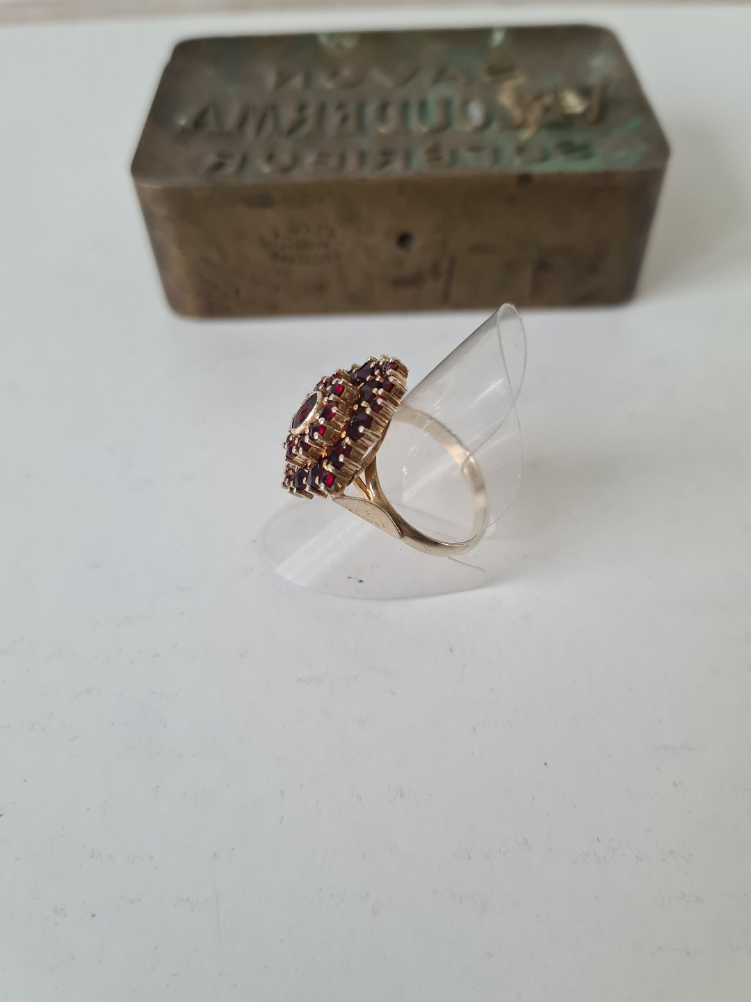 Vintage ring i forgyldt sølv med talrige smukke mørke granater.