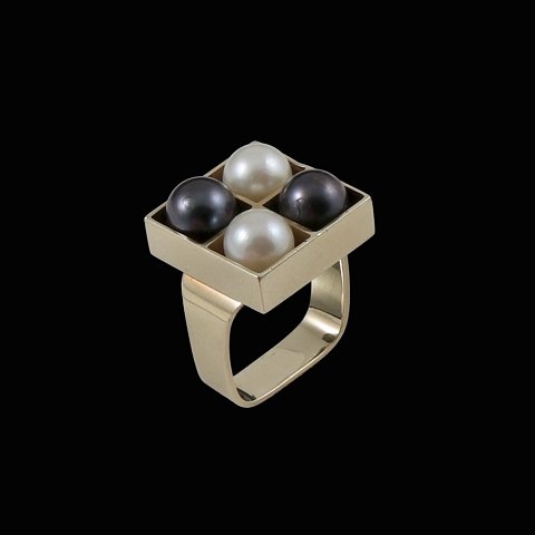 Bræmer-Jensen. Ring i 14k guld med perler.