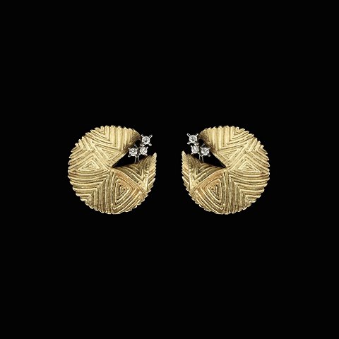 Georg Jensen. 18k Yellow & White Gold Ear Clips with Diamonds. 0,14ct