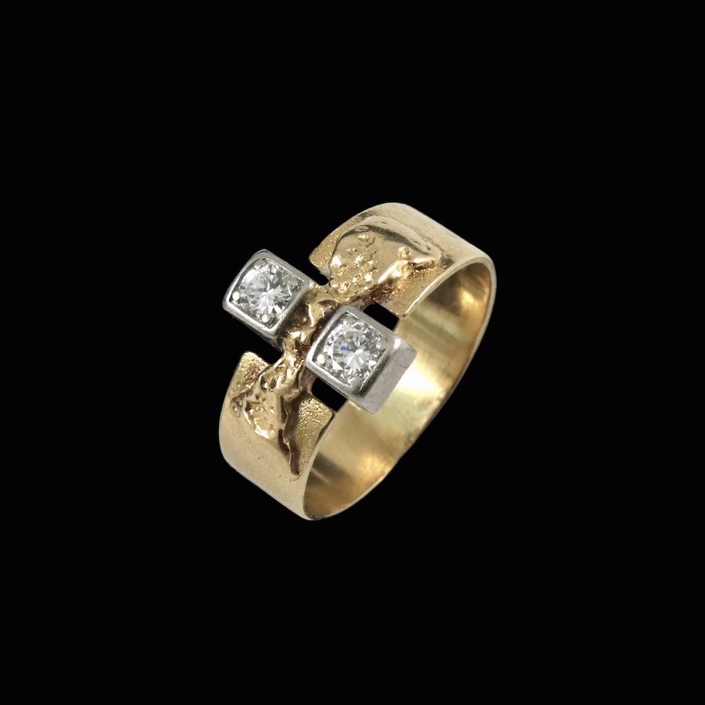 Lapponia. Ring i 14k guld og hvidguld med brillanter 0.20ct - Björn Weckström 1969.