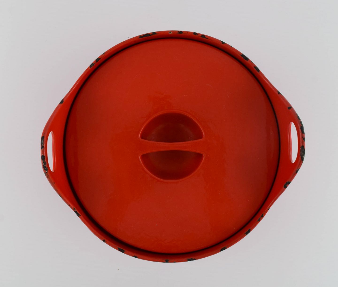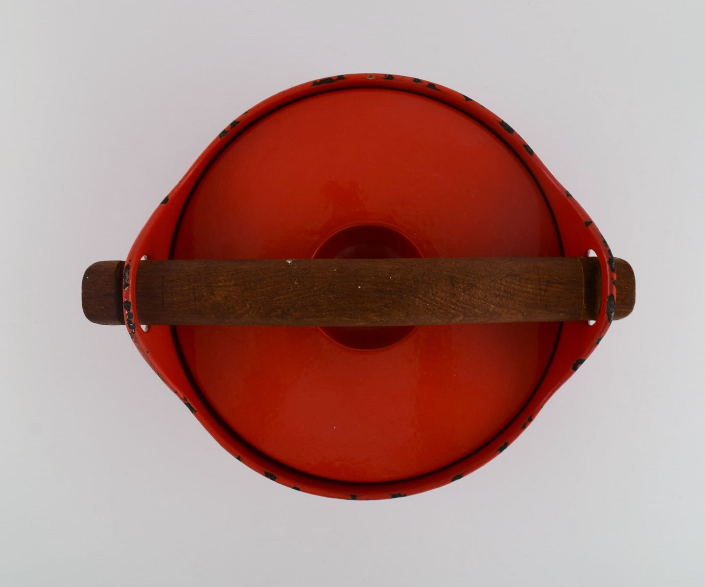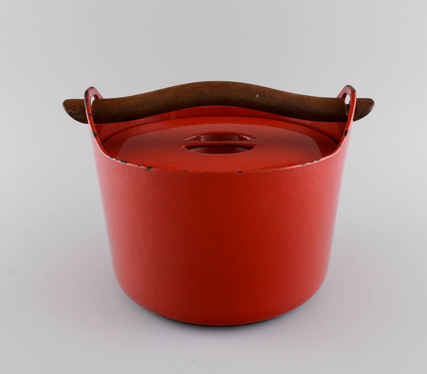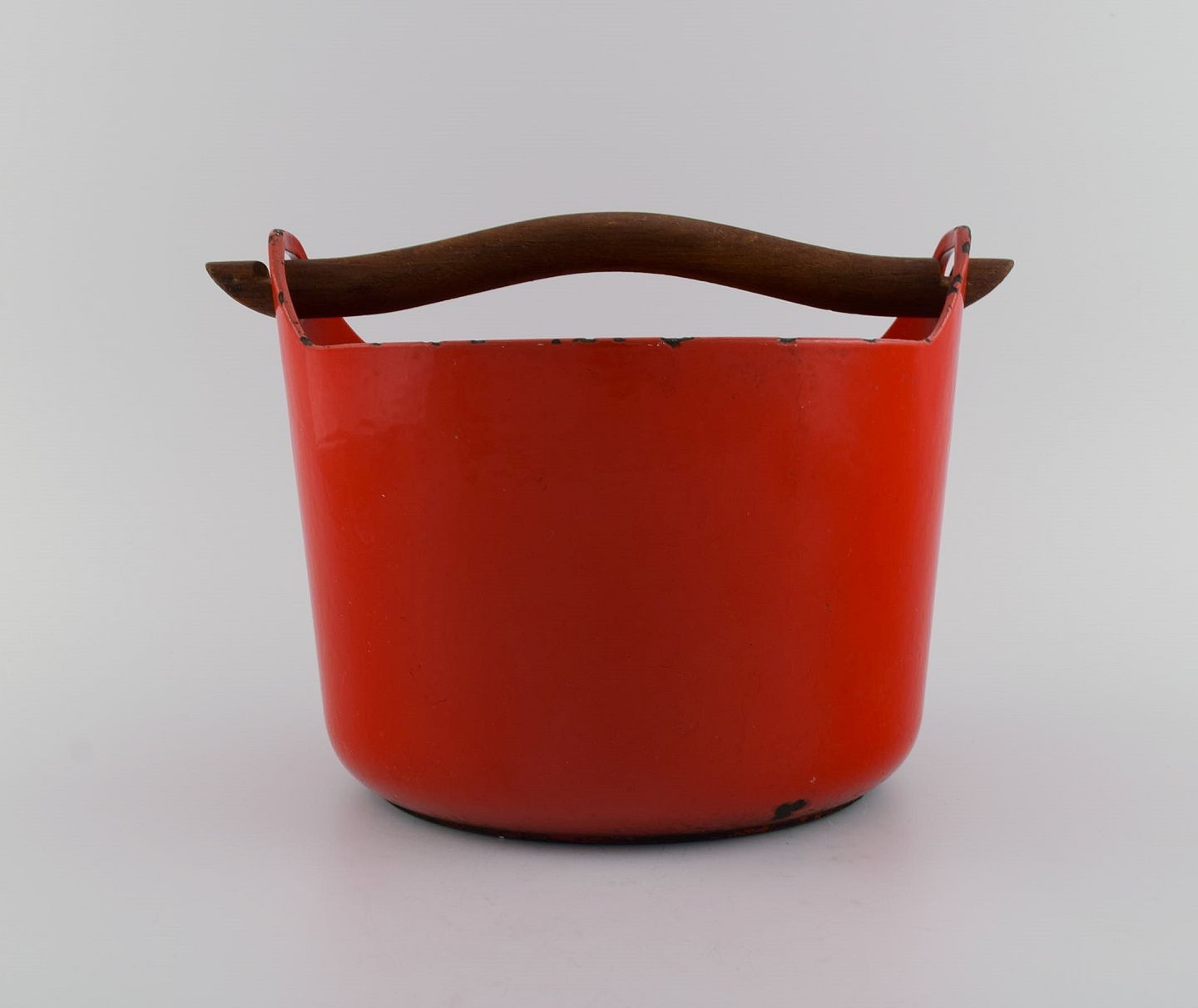 Timo Sarpaneva for Rosenlew, Finland. Støbejernsgryde i rød emalje med hank i træ. Midt 1900-tallet.
