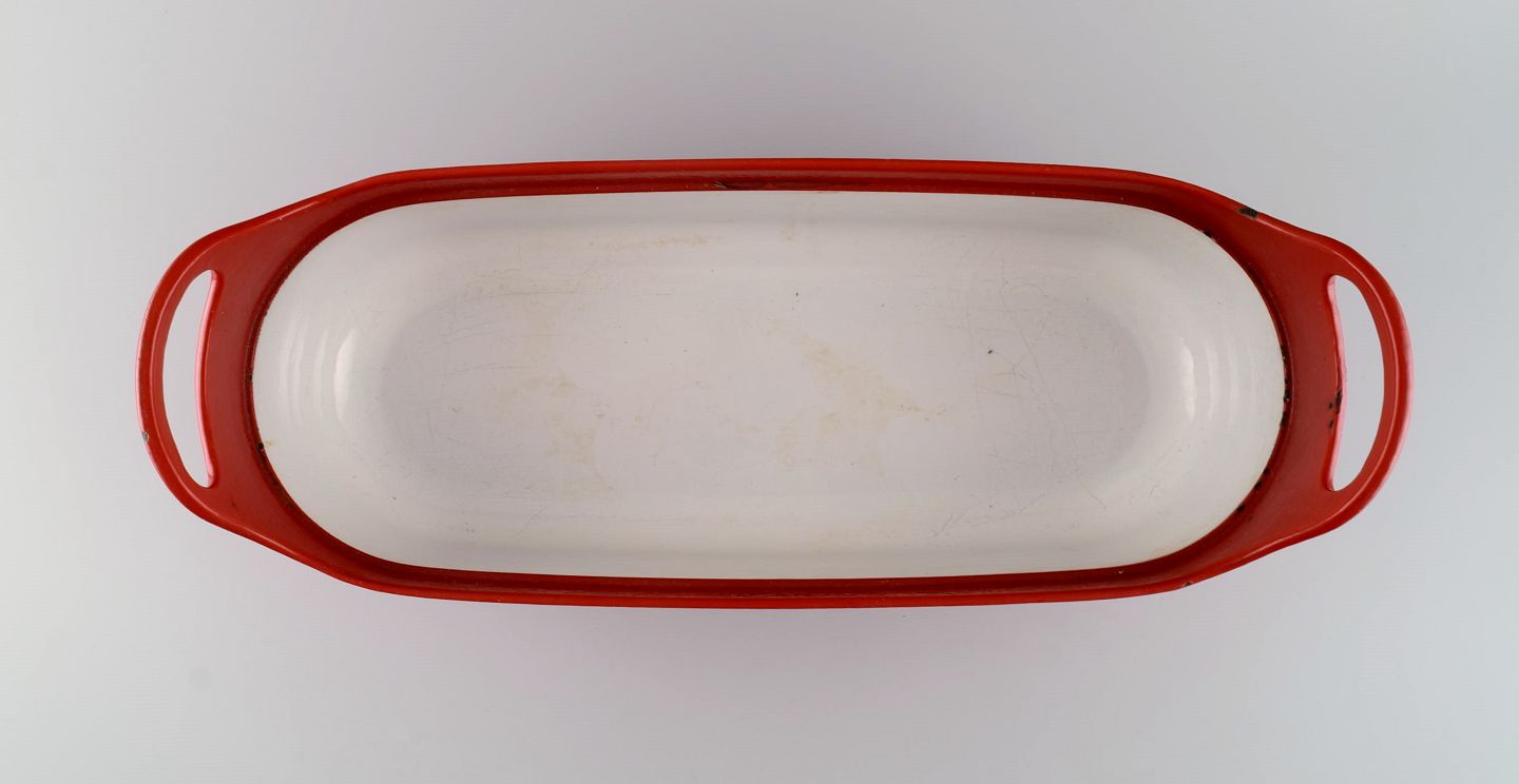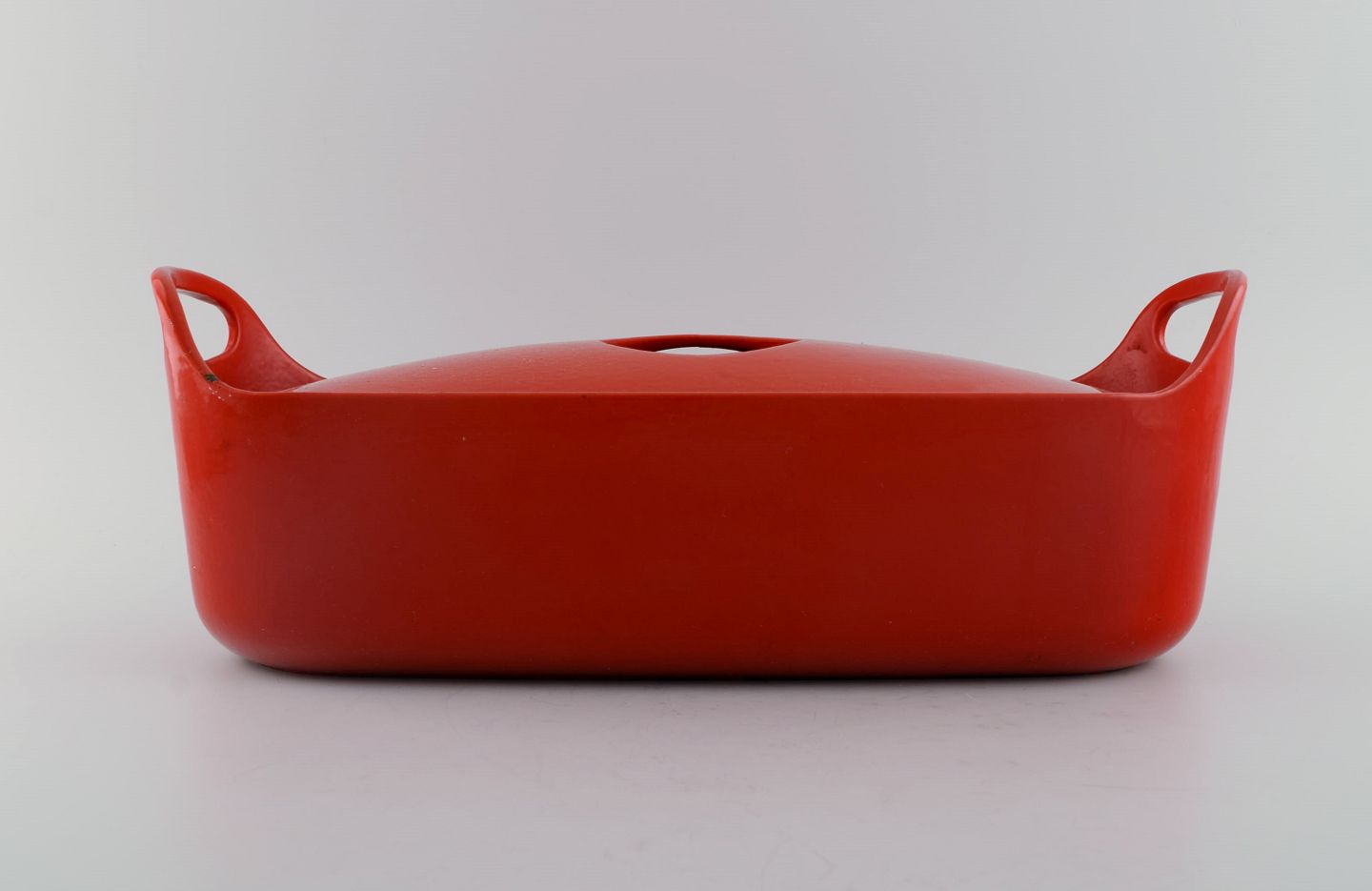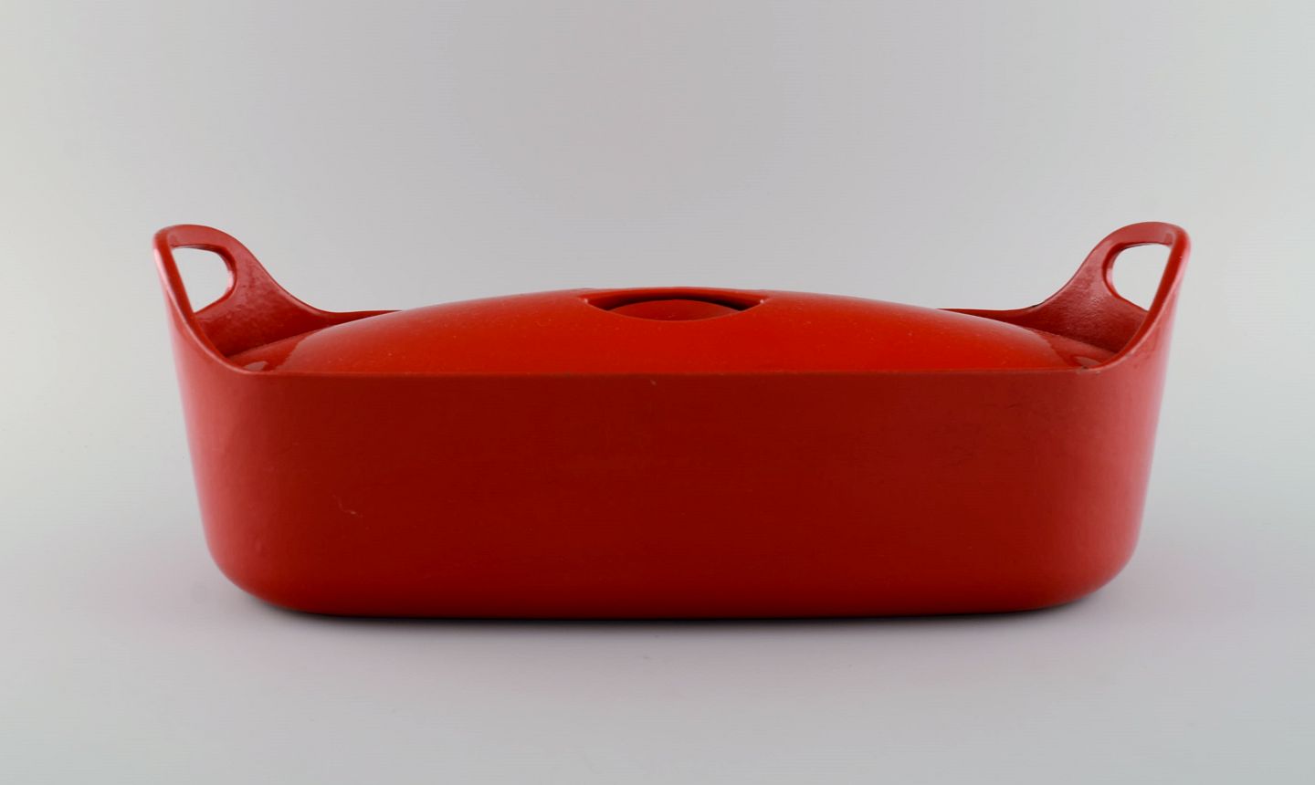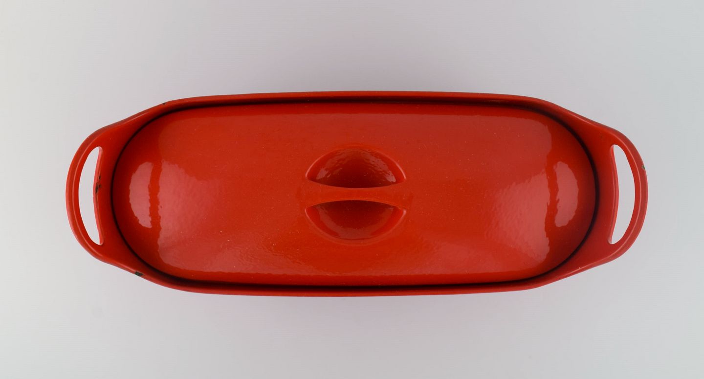 Timo Sarpaneva for Rosenlew, Finland. Sjælden fisketerrin i støbejern med rød emalje. Midt 1900-tallet.