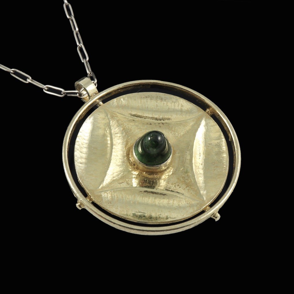 Bent Exner (1932-2006). Fire-gilded Sterling Silver Pendant Necklace with Tourmaline.