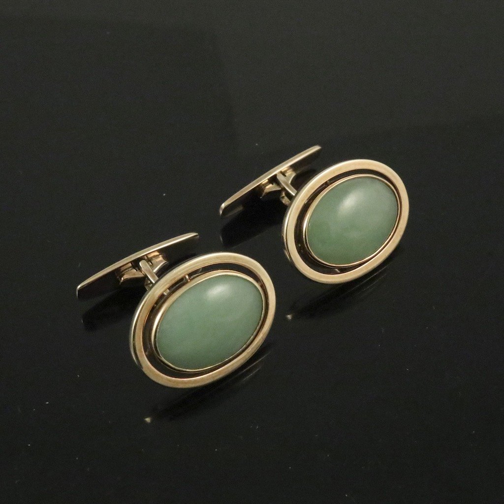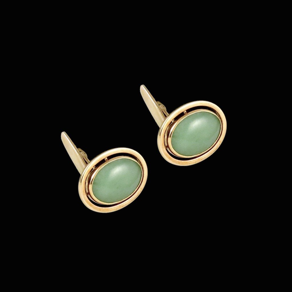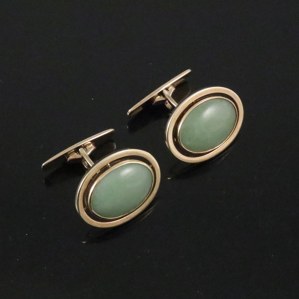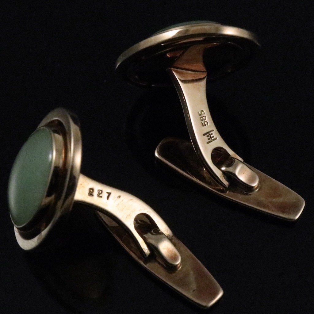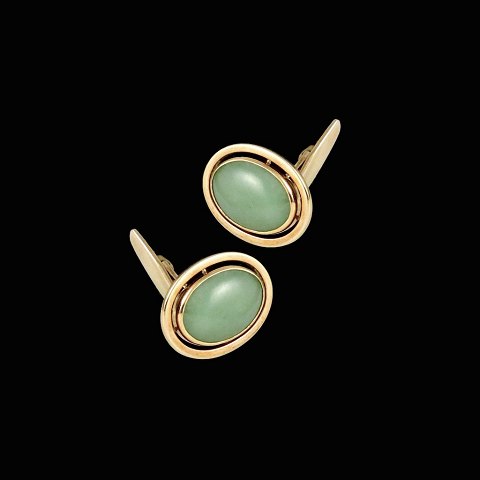Hans Hansen. Manchetknapper i 14k guld med Jade.#227