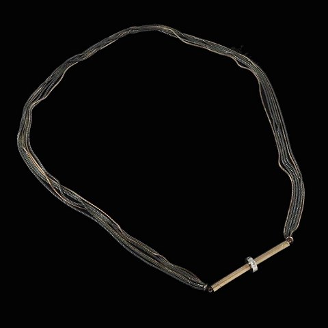 Ole Lynggaard. Seksradet halskæde med diamantvedhæng i 14k guld.