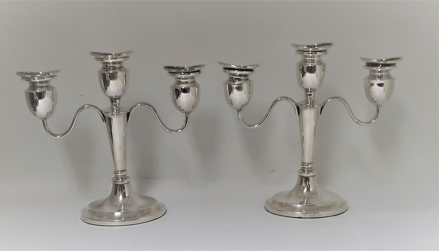 Toxværd. Sølv 3-armet stager (925). Et par. Højde 19 cm.
