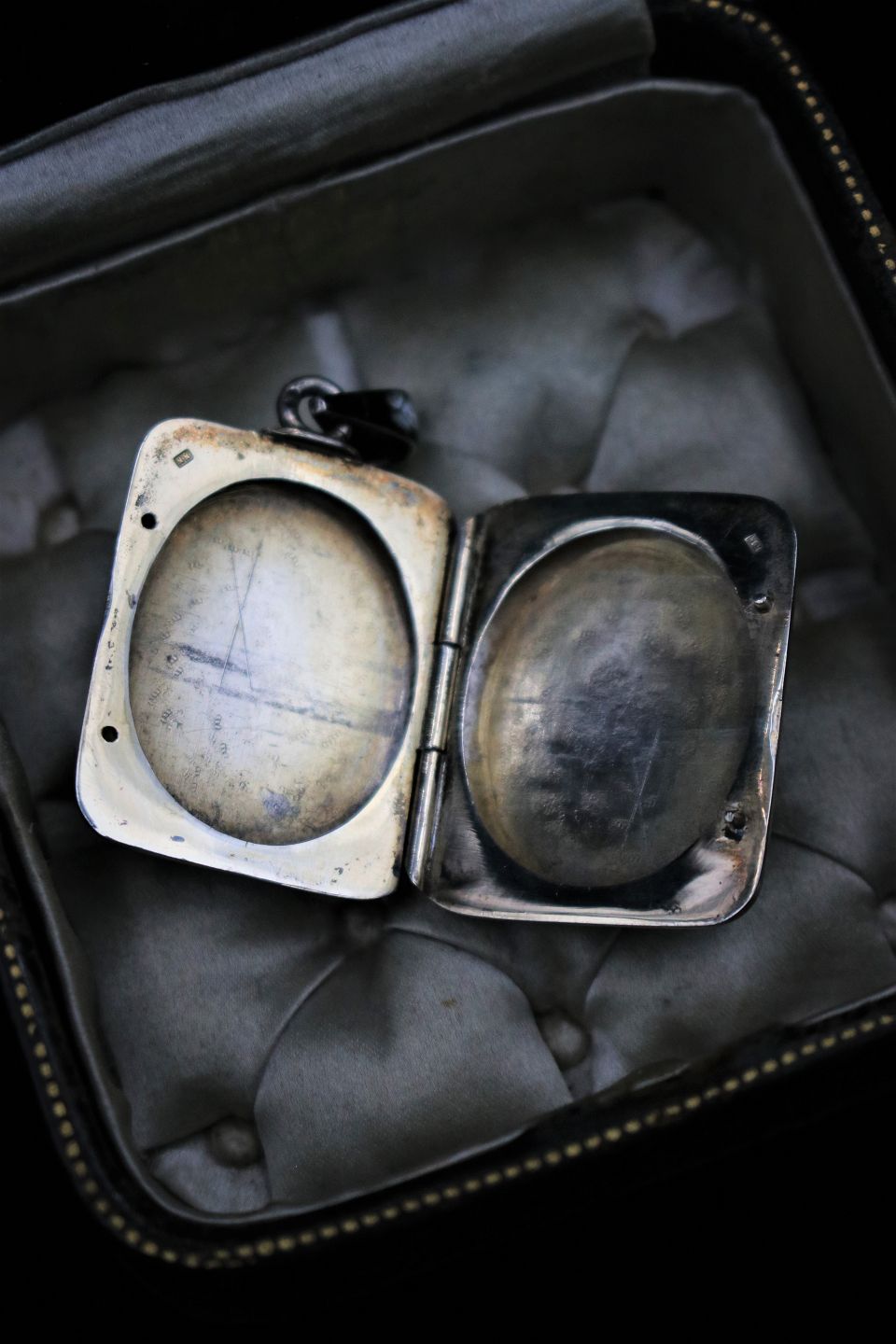 Gammelt vedhæng , medaljon i sølv / emalje med små engle.