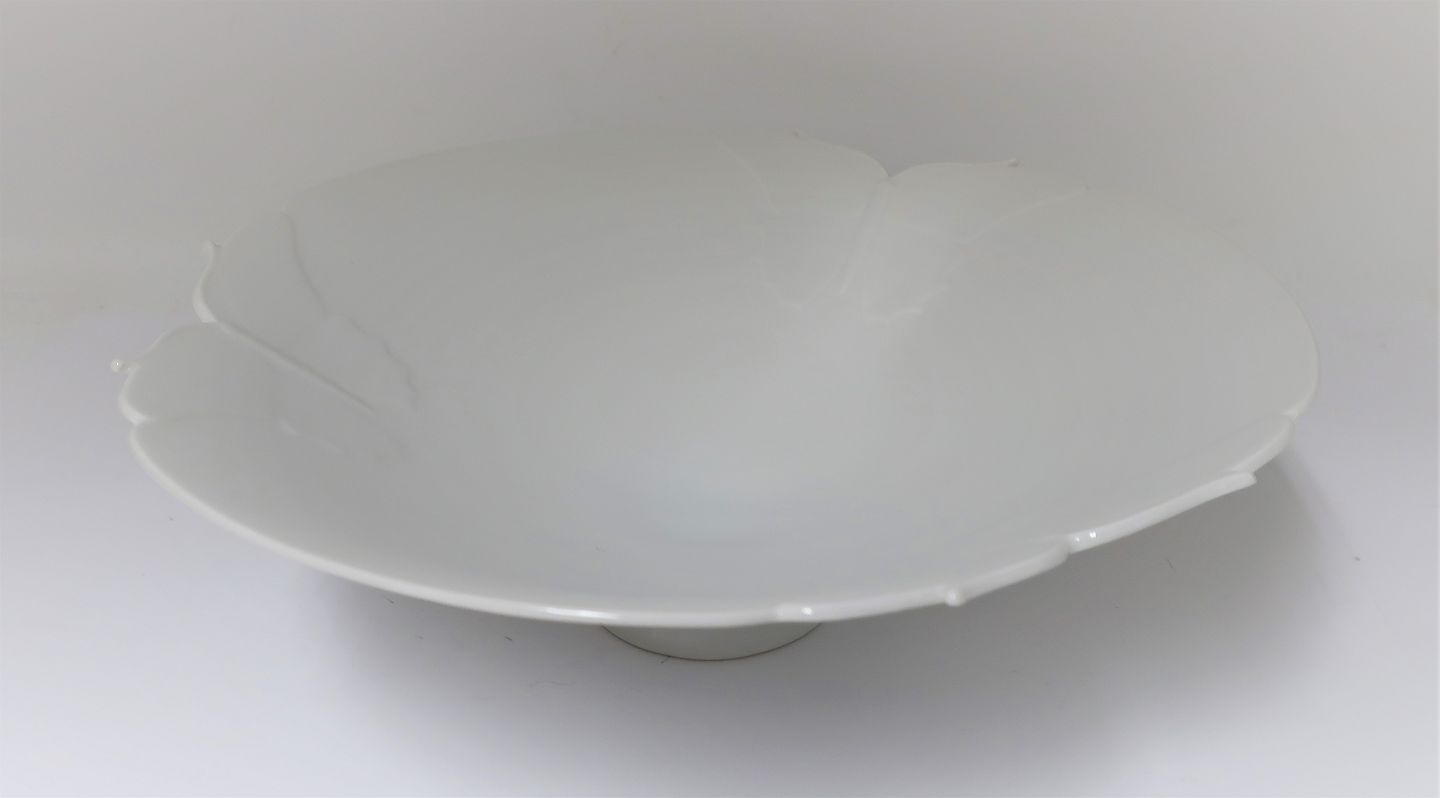Royal Copenhagen. Hvid porcelænsskål på fod med sommerfugle. Højde 9 cm. Diameter 27 cm. (2 sortering)