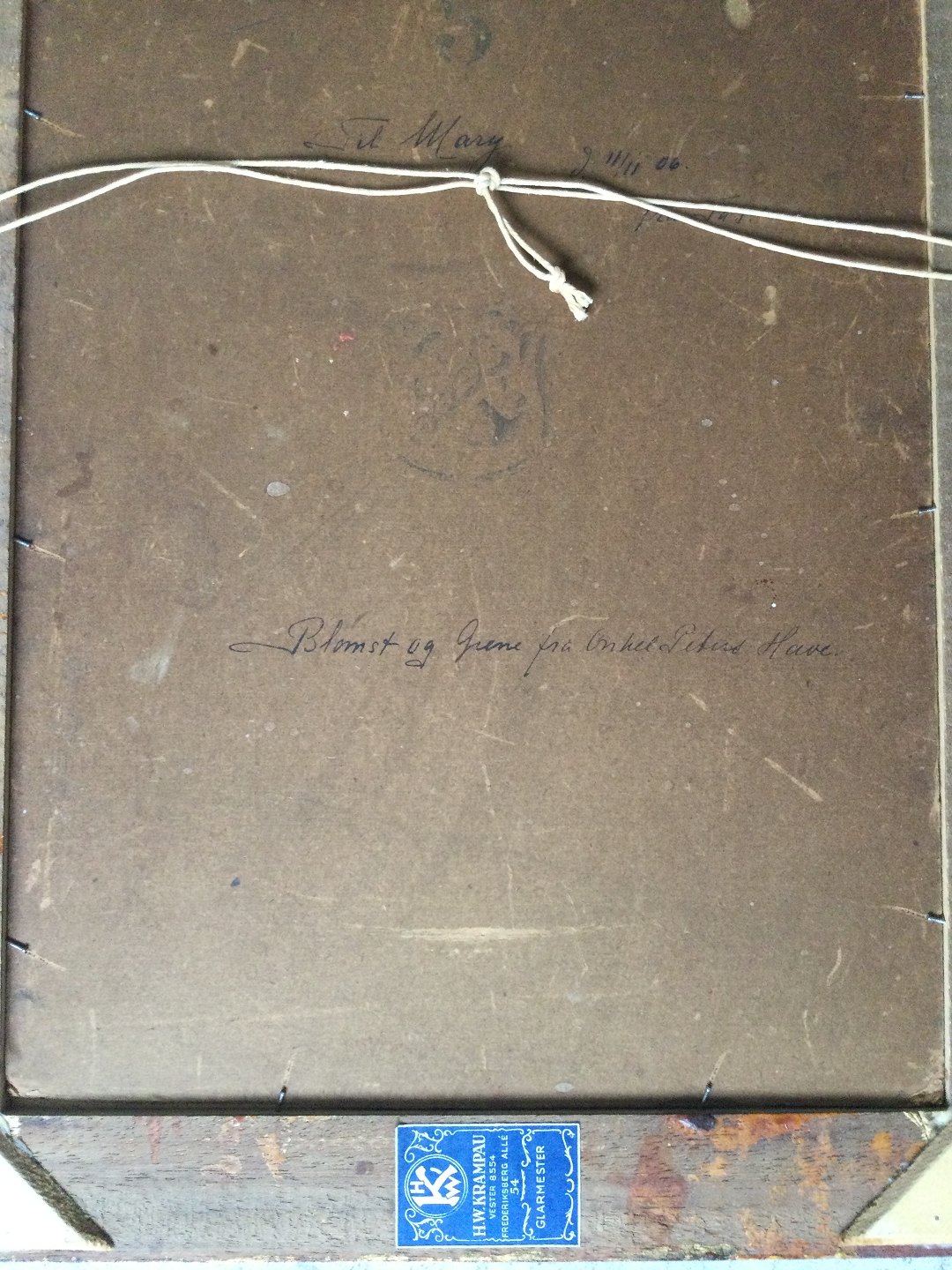 Indrammet i smuk ramme fra H.W. Krampau, Frederiksberg Allé.