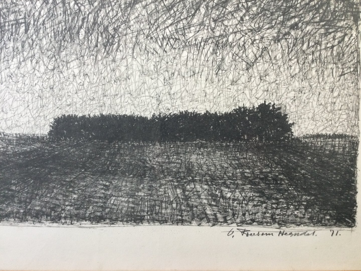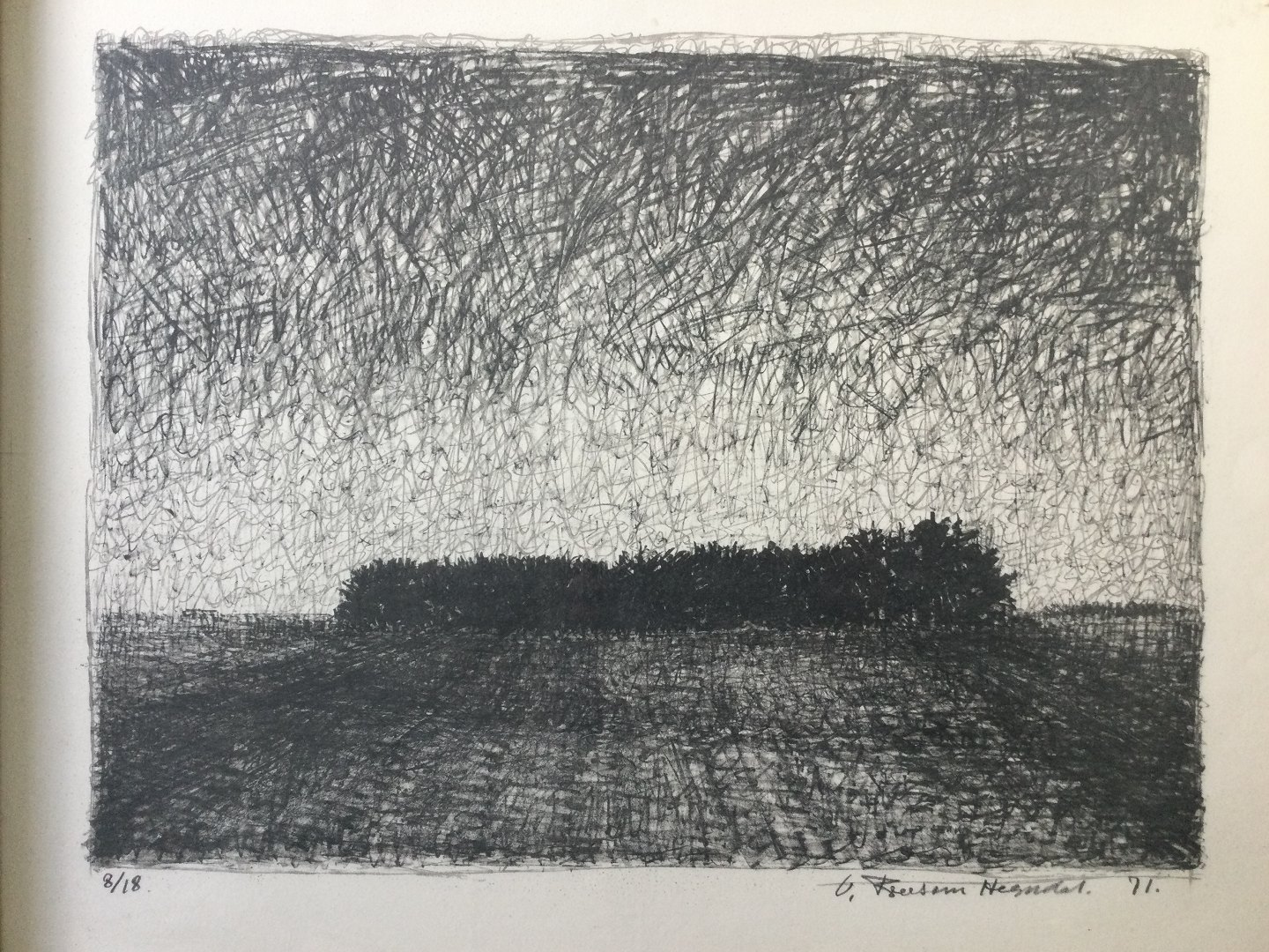Litografi af Valdemar Foersom Hegndal - Skovbryn, skumring 1971.
