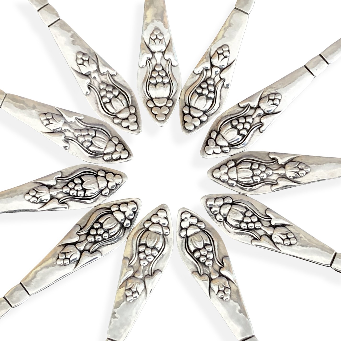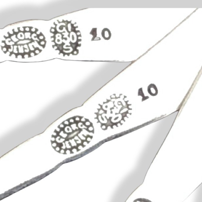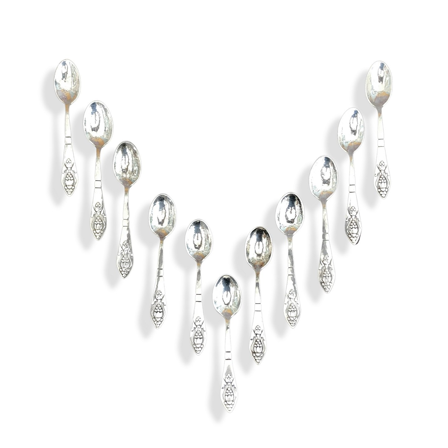 11 stk. Kaffeskeer model 10 af sølv. Stemplet Georg Jensen, Copenhagen, 10 samt GI 830s med monogram fra 1915-1930.