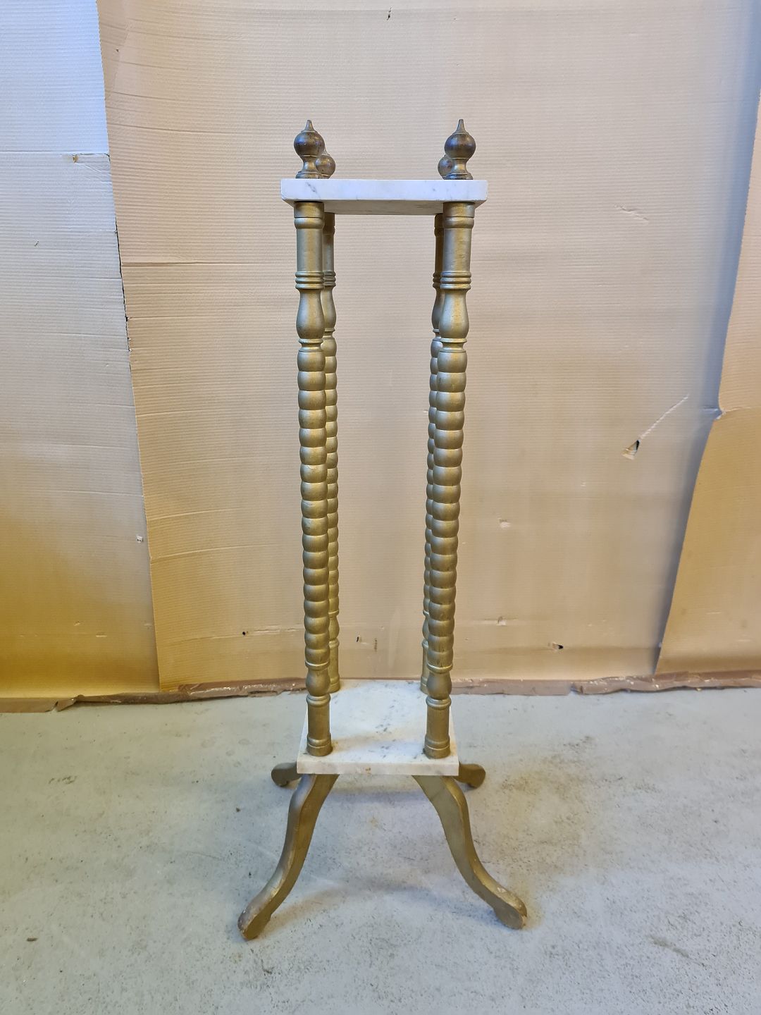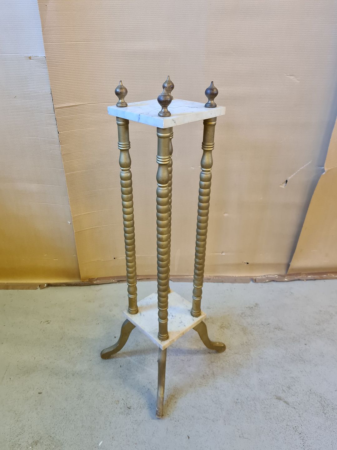 Piedestal i malet træ med marmorplader, fra 1920erne.