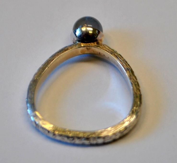 Sterling sølvring med månesten, 20. årh. Ib Due, Aarhus, Danmark.