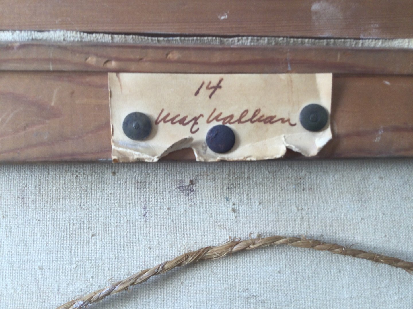 Bagpå blindramme: Udstillingsmærkat.