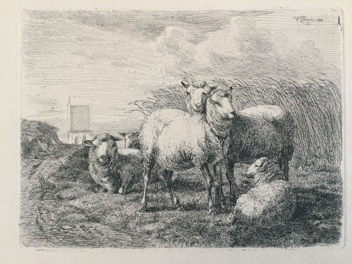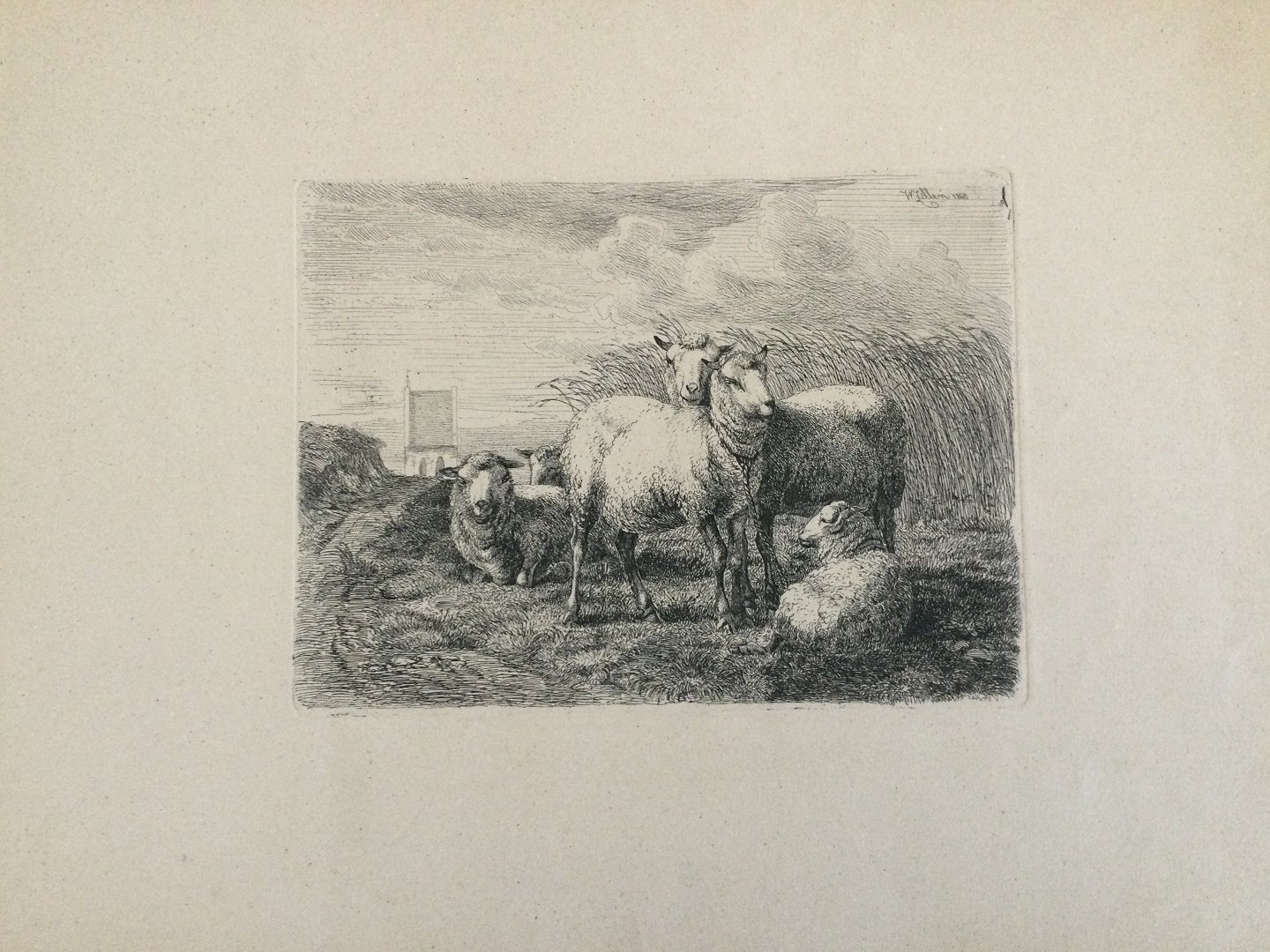 Radering af Johannes Vilhelm Zillen 1860 - Får på marken.