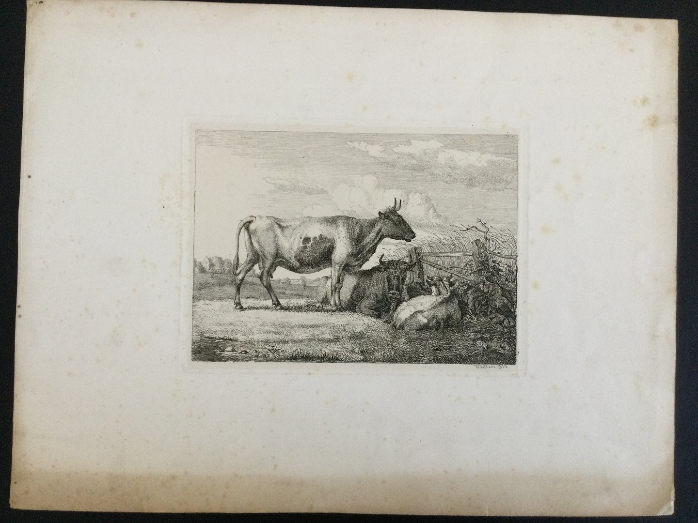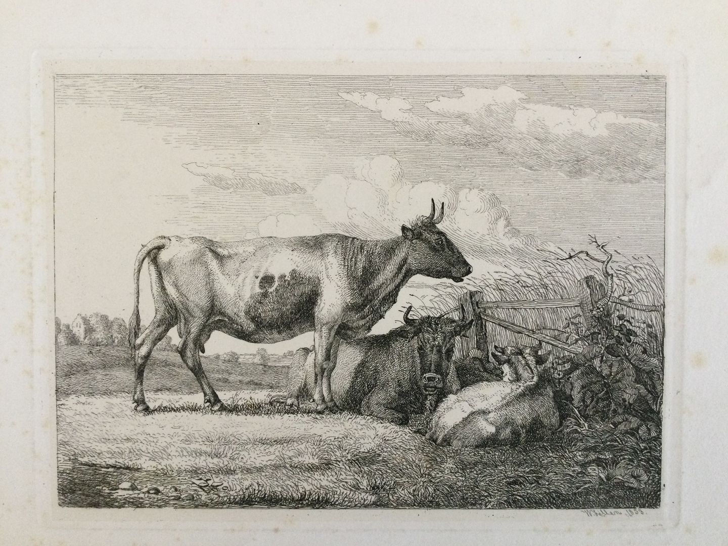 Radering af Johannes Vilhelm Zillen 1858 - Køer på marken.