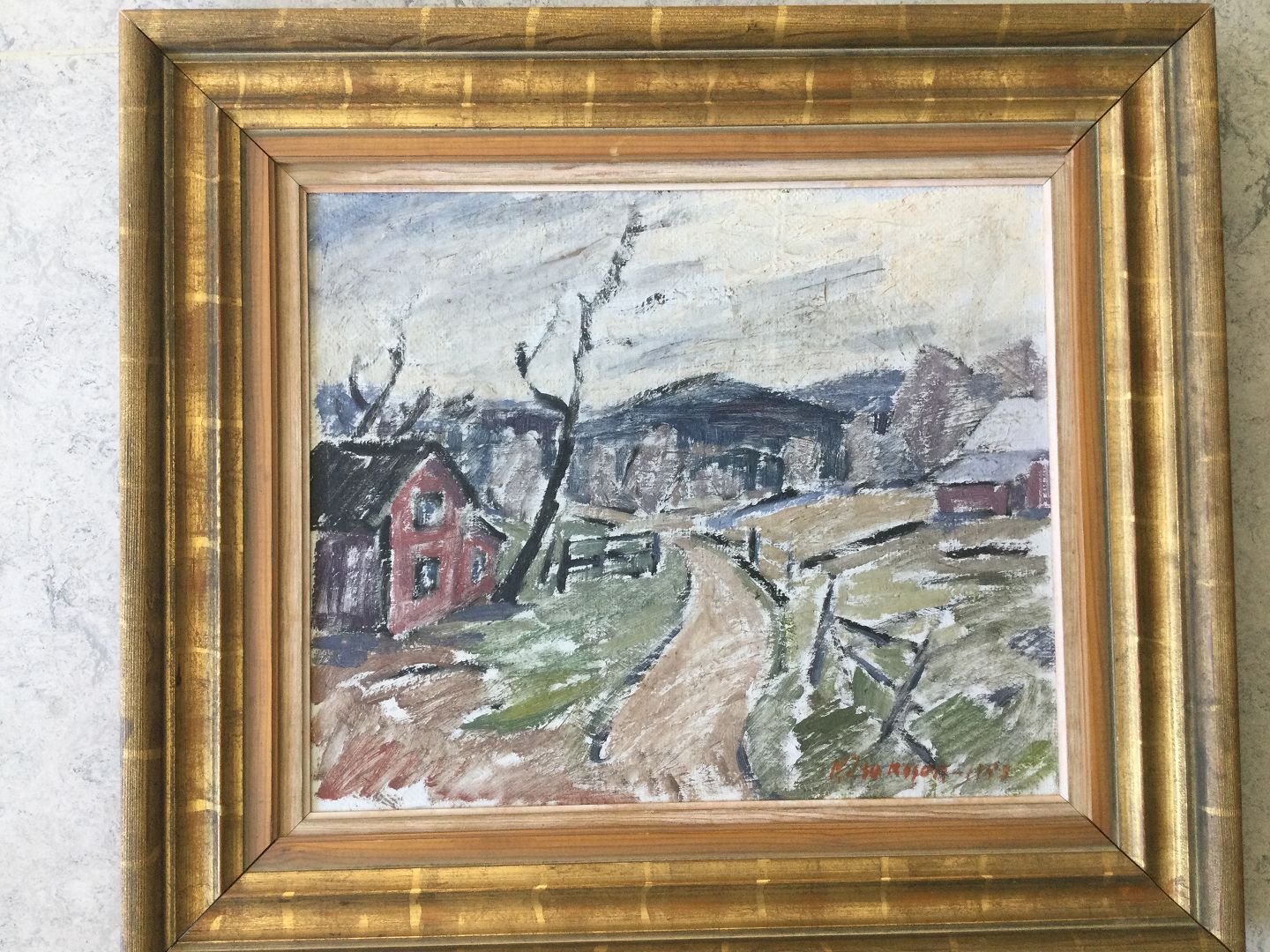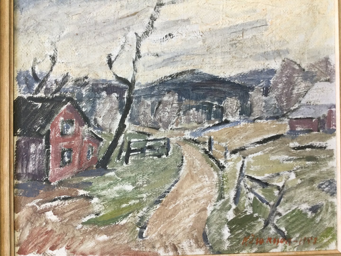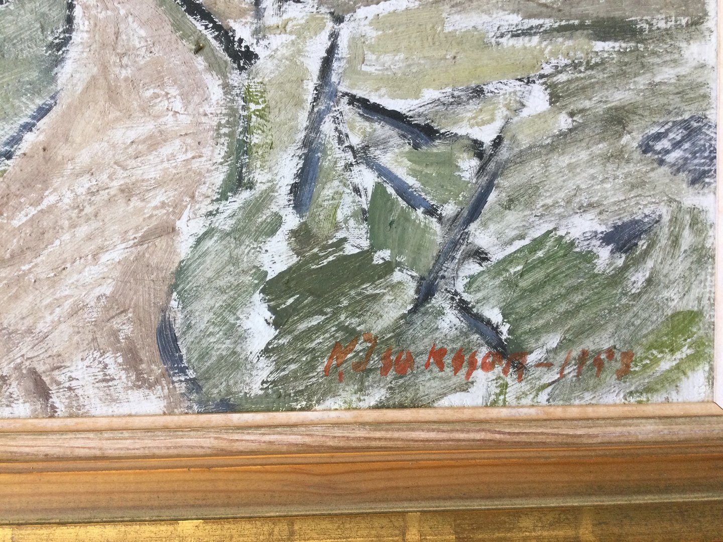Maleri af Nils Isaksson - Landskab "Mod Våren" 1957.