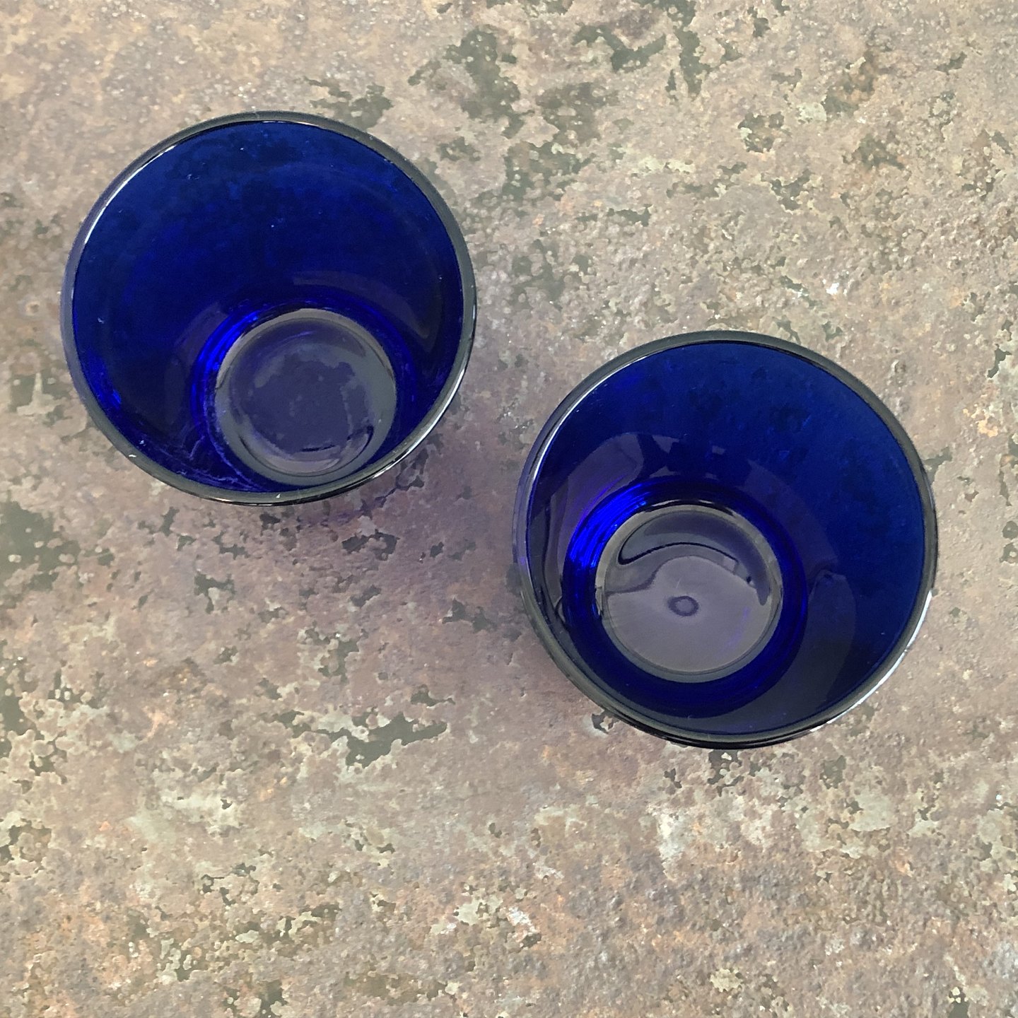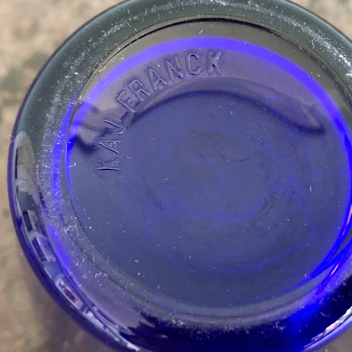 Kaj Franck. 2 drikkeglas af støbt blåt glas. Signeret i bunden.