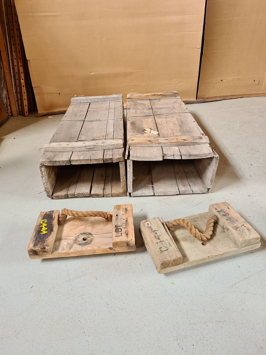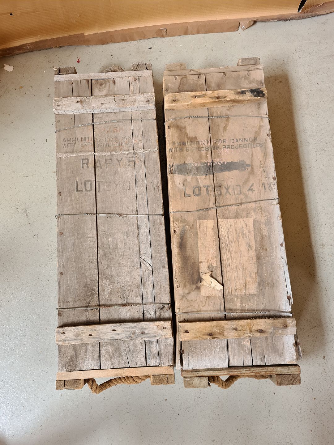 2 Stk. ammunitionskasser i massivt fyrretræ fra 1950erne.