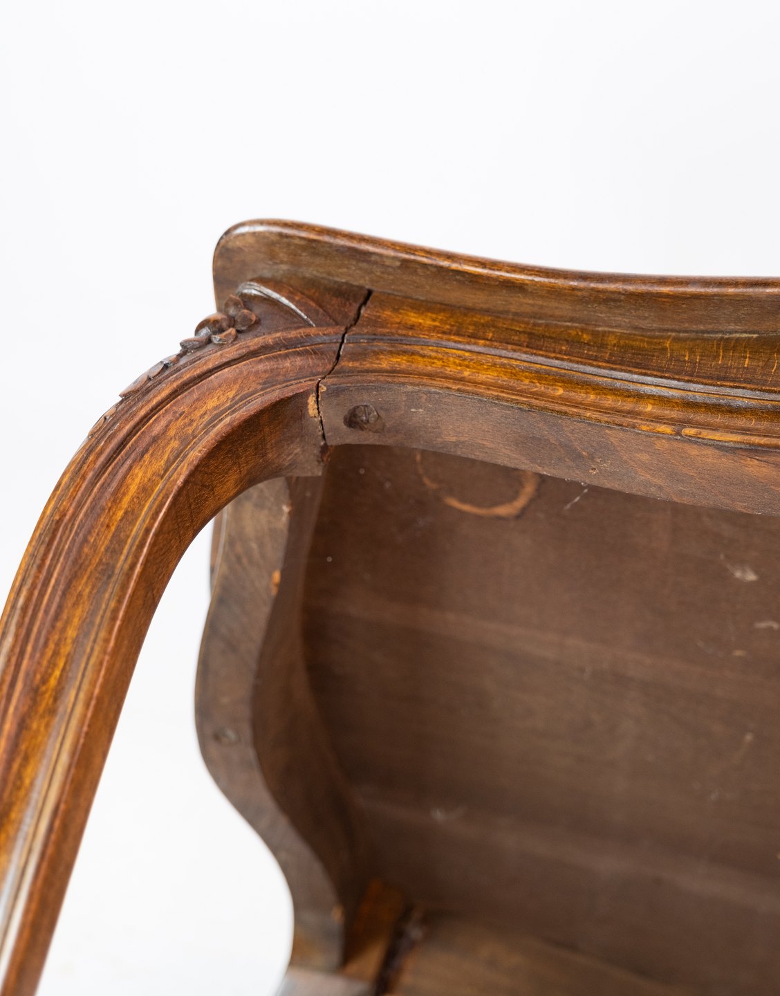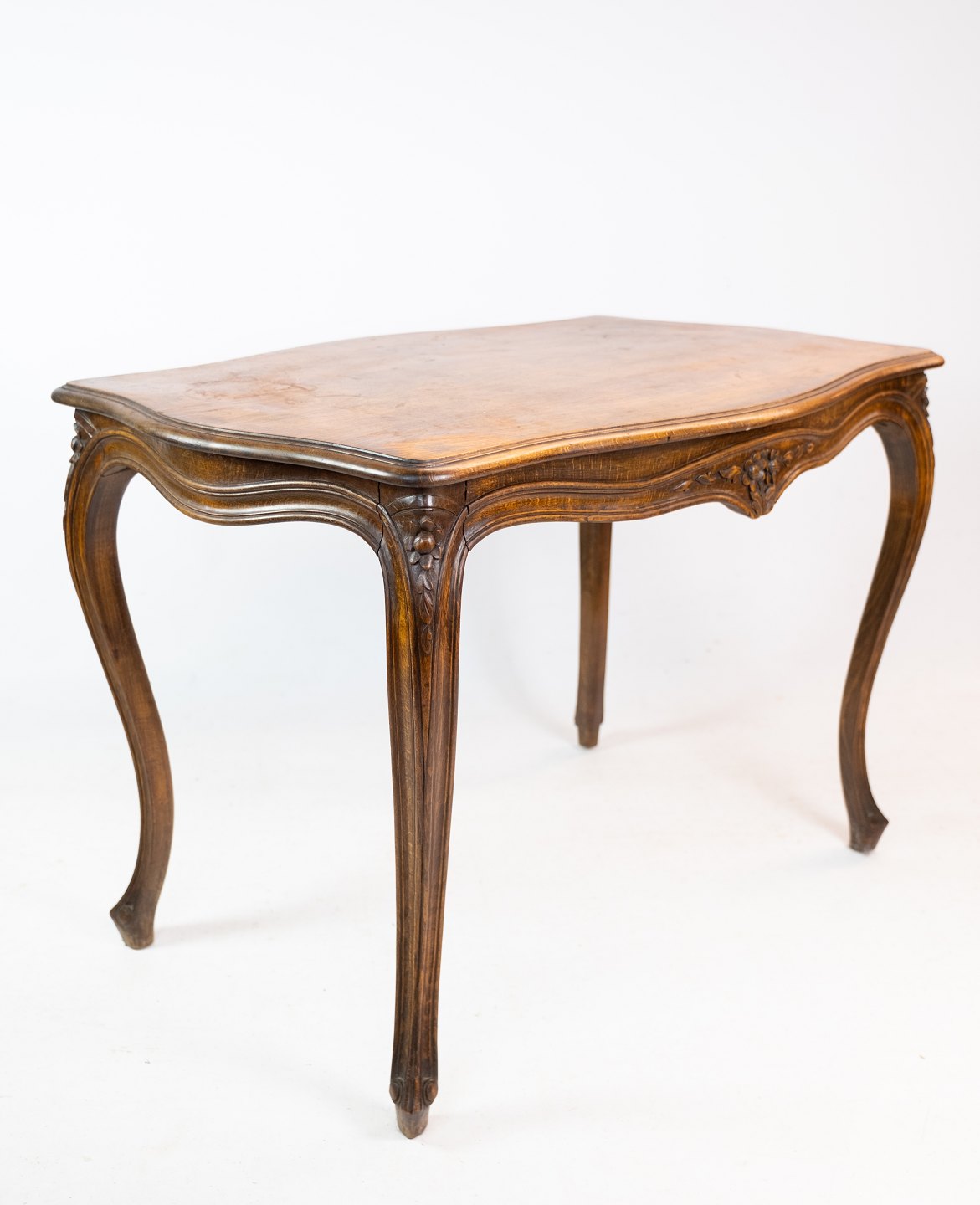 Antikt sofabord i mahogni med udskæringer fra omkring 1930'erne. Vil blive istandsat inden eventuel salg.