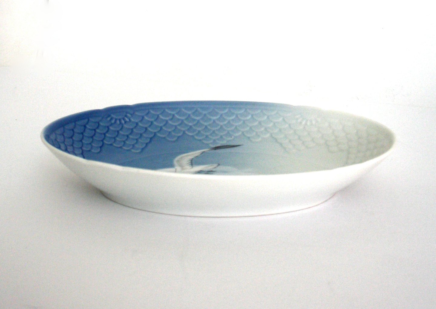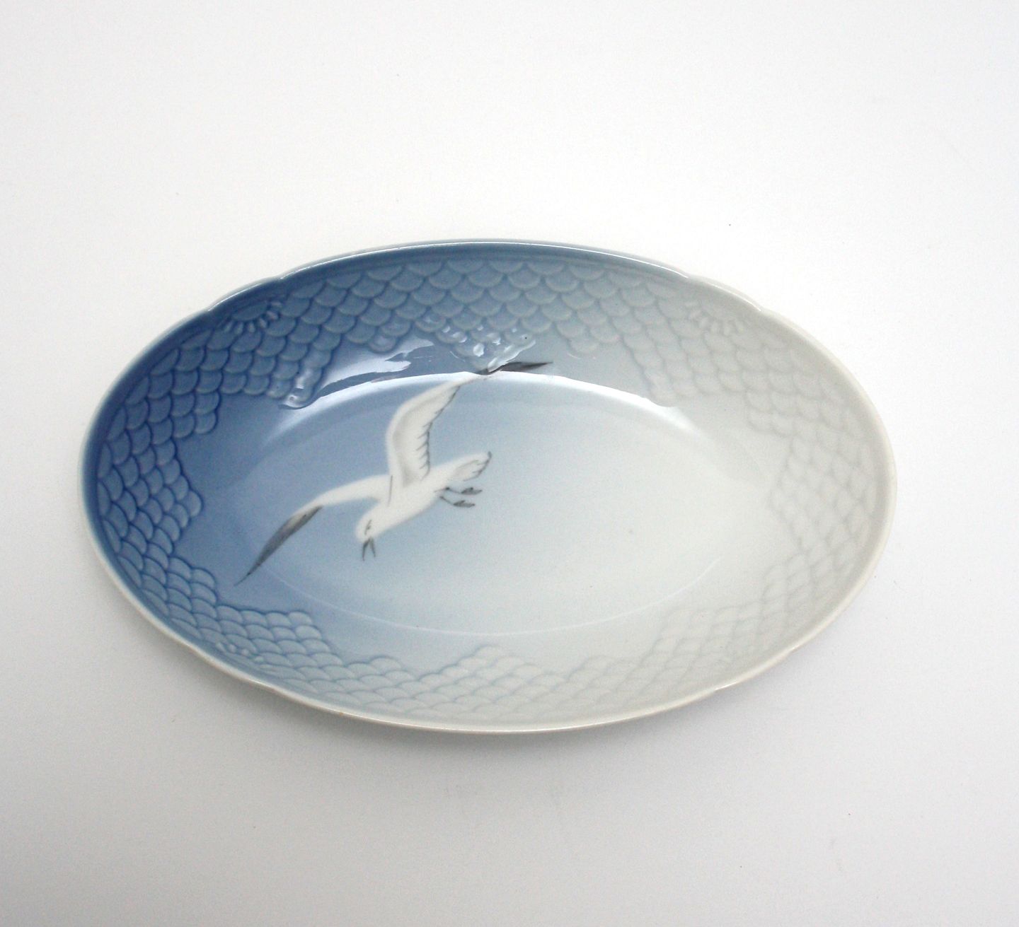 Bing & Grøndahl, Måge uden guld, Aflangt dyb assiet. Nr. 39. Længde 23,4 cm. Bredde 15 cm. II. sortering. Pris: 250 kr. stk. Lager: 1