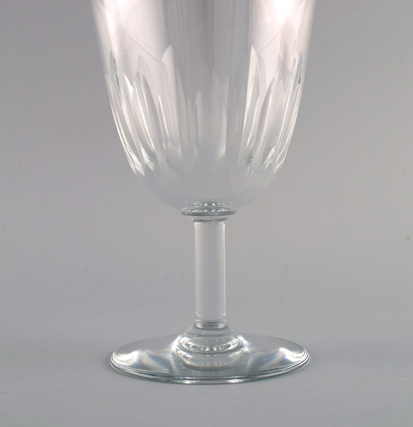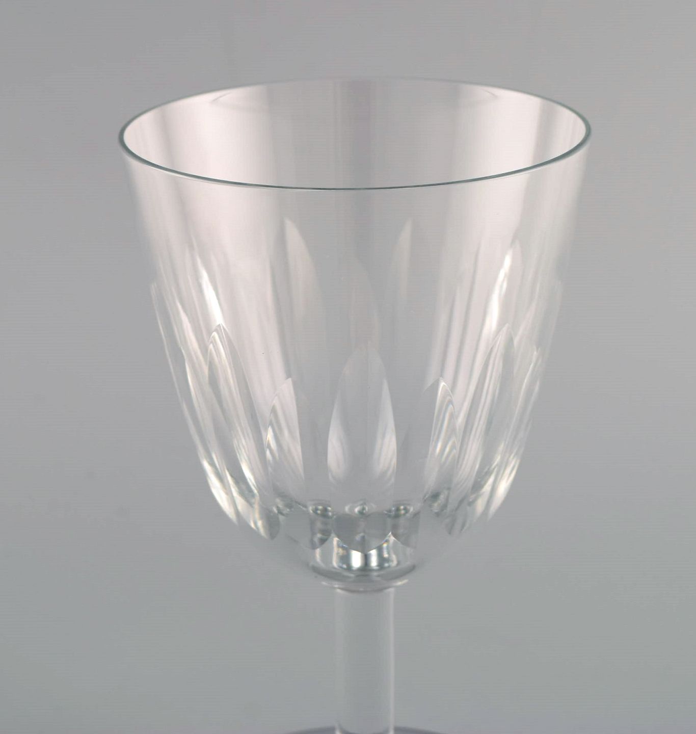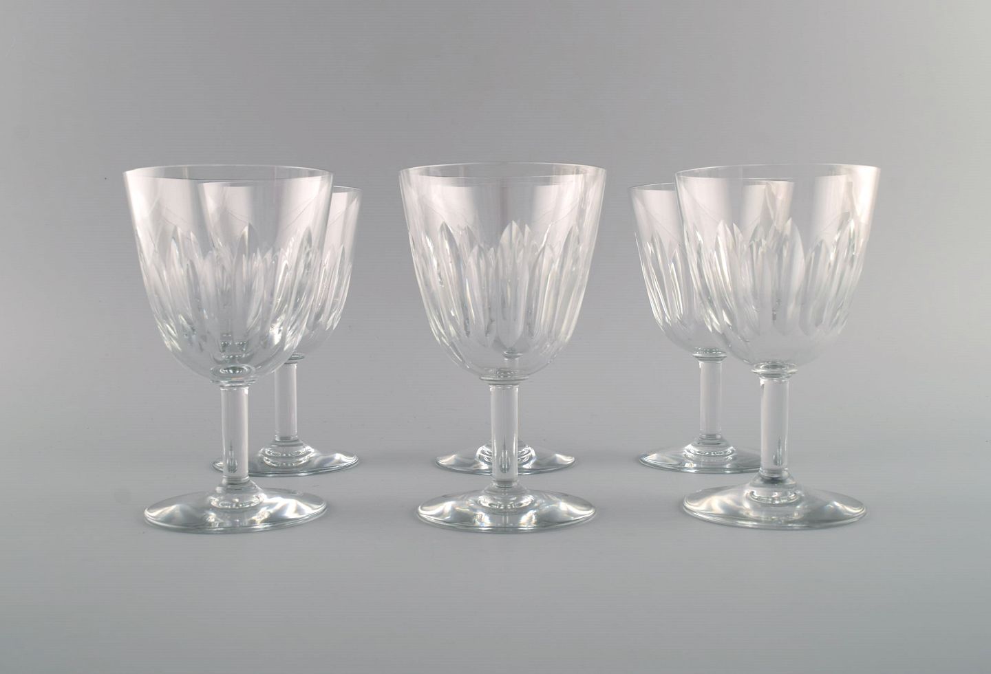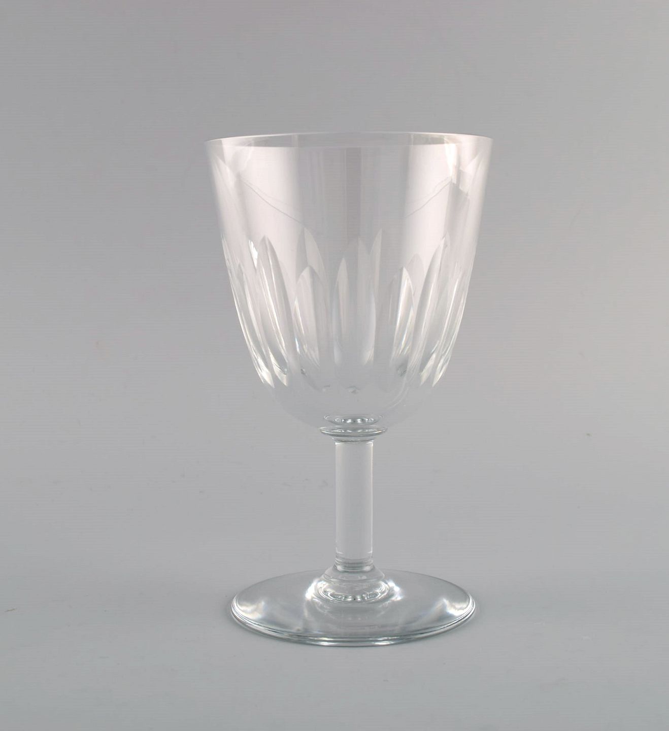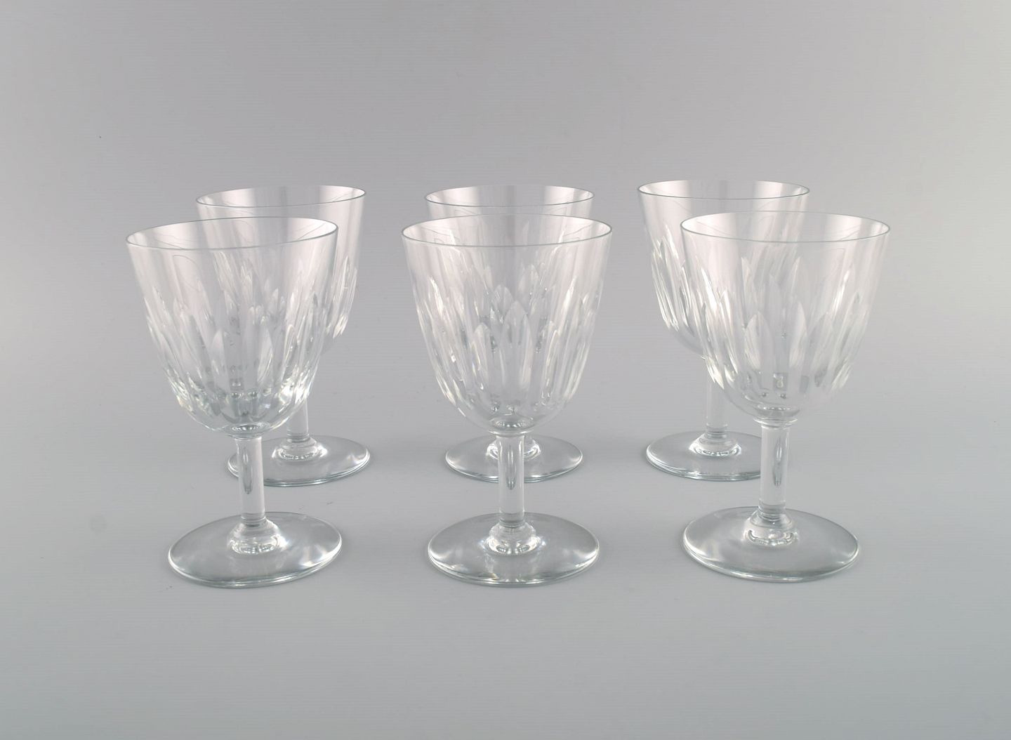 Baccarat, France. Six art deco red wine glasses in clear mouth-blown crystal glass. 1930s.