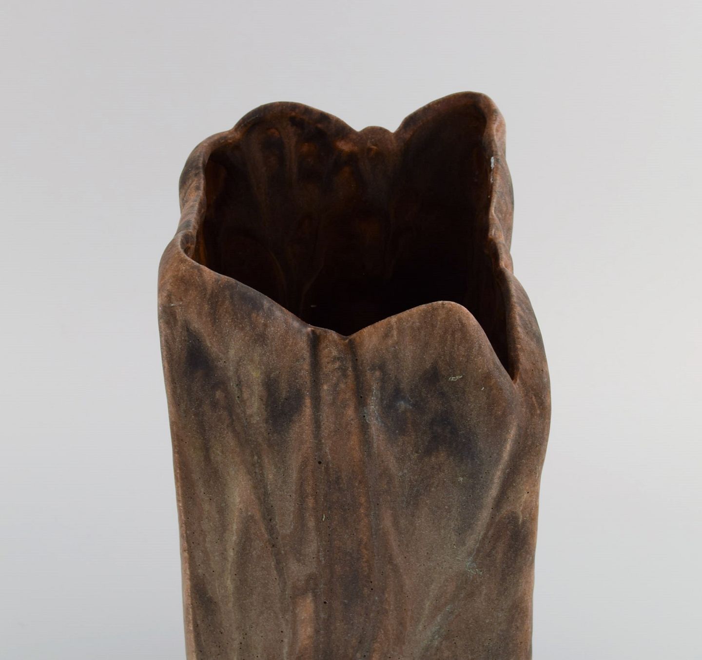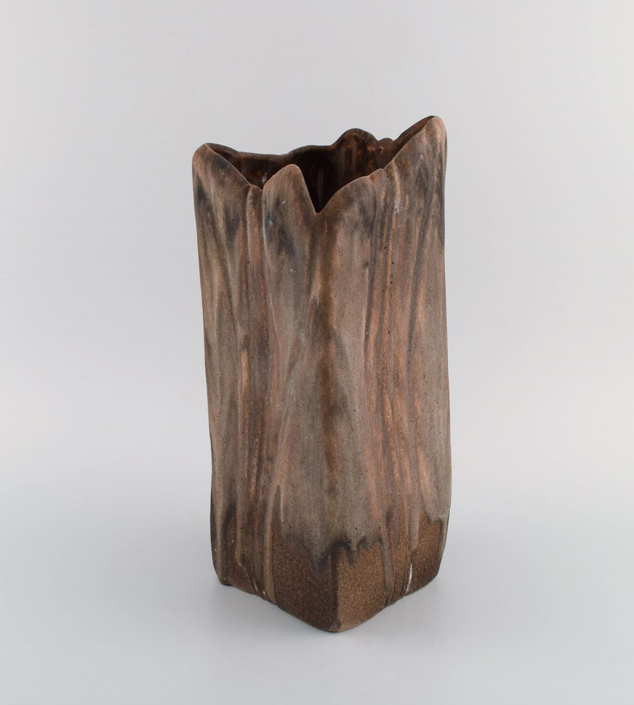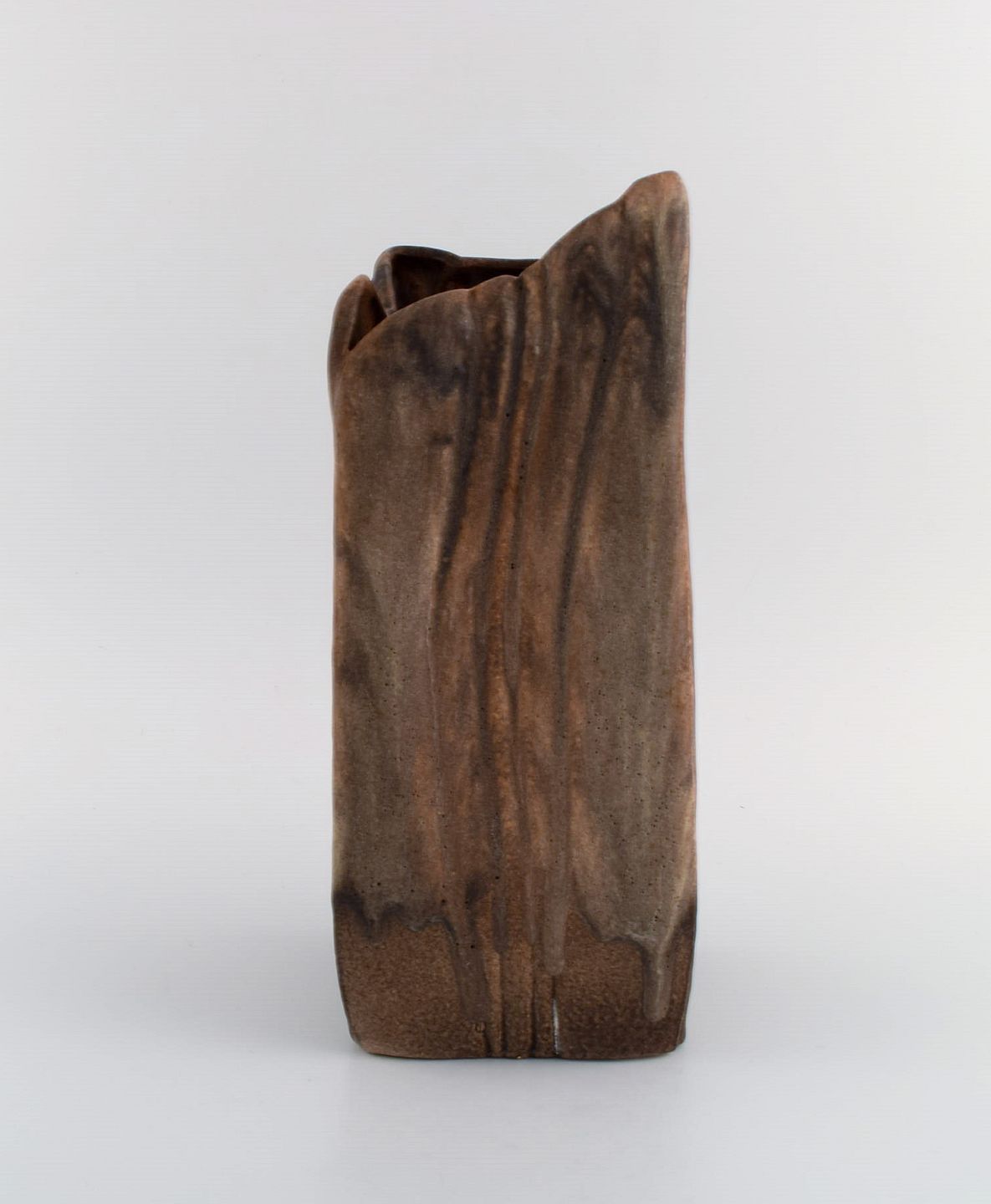 Europæisk studio keramiker. Unika vase i glaseret keramik. Smuk glasur i brune nuancer. Sent 1900-tallet.
