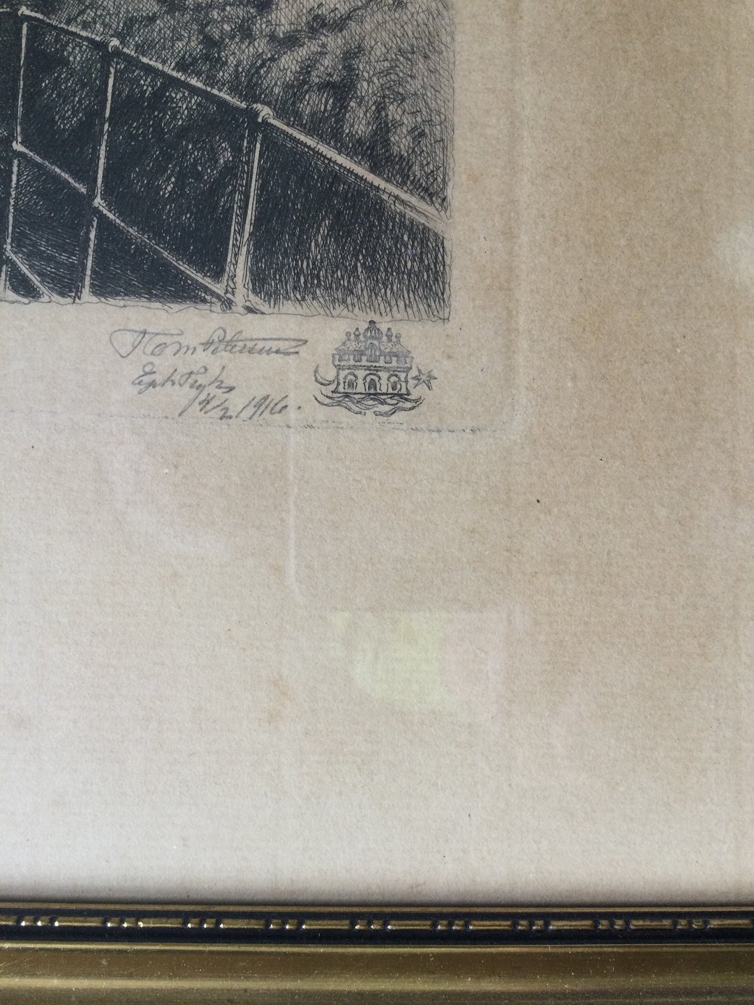 Sign.: P. Tom Petersen (bly) samt i trykket Monogram 1884-1916