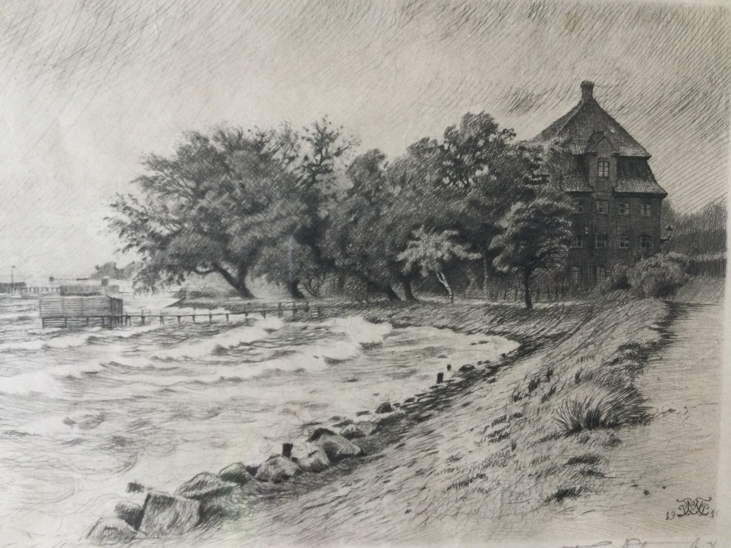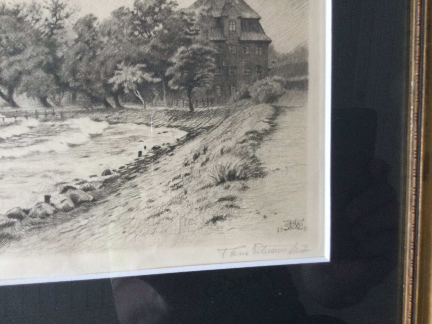 Sign.: P. Tom Petersen (bly) samt monogram 1910 i trykket.