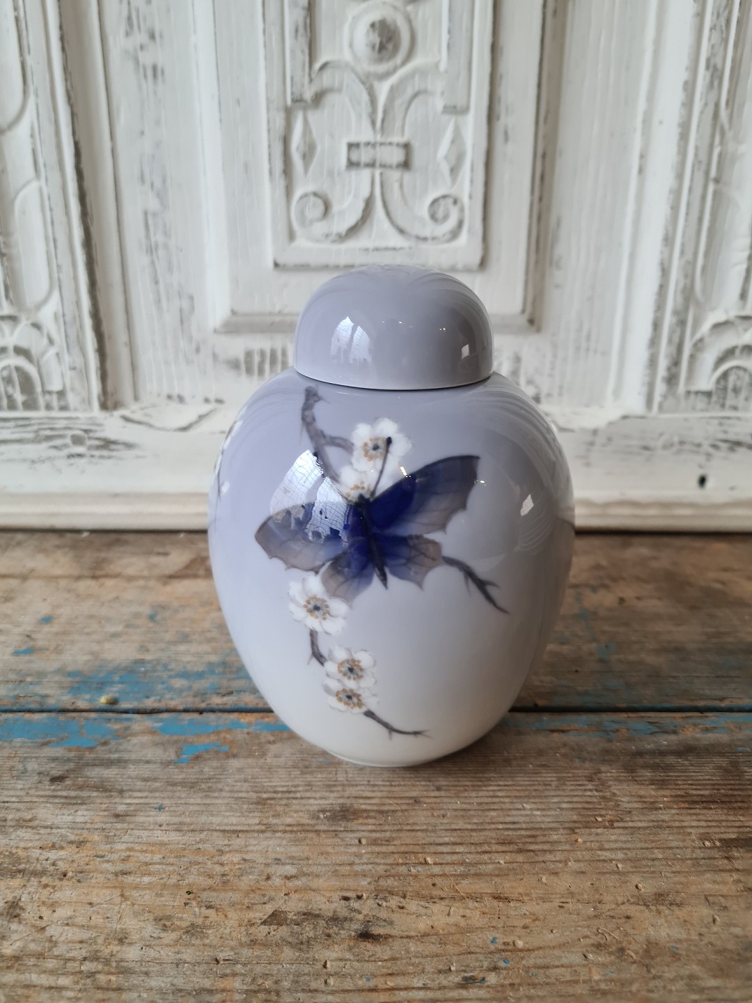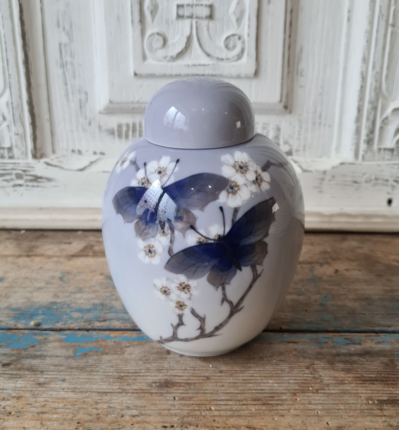 Royal Copenhagen lågvase dekoreret med sommerfugle og kirsebærgrene