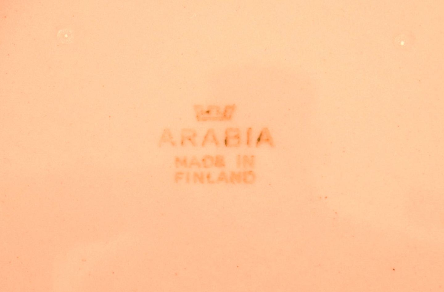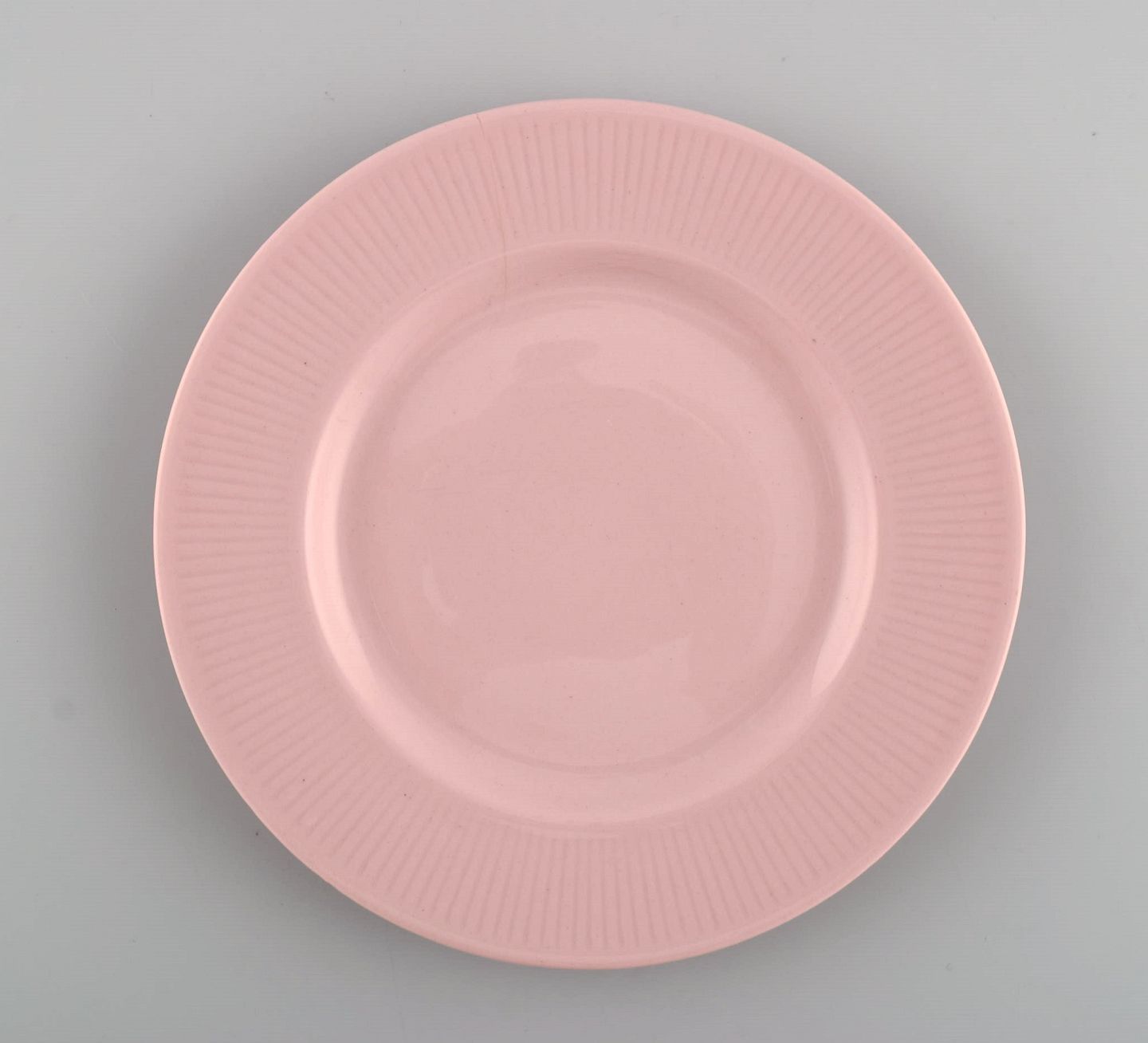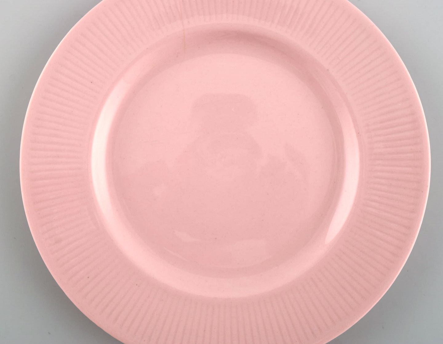 Fem Arabia tallerkener i pink glaseret porcelæn. Midt 1900 tallet.