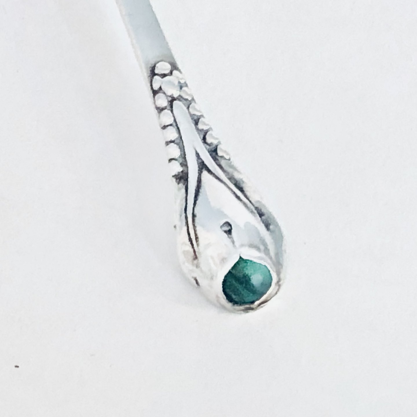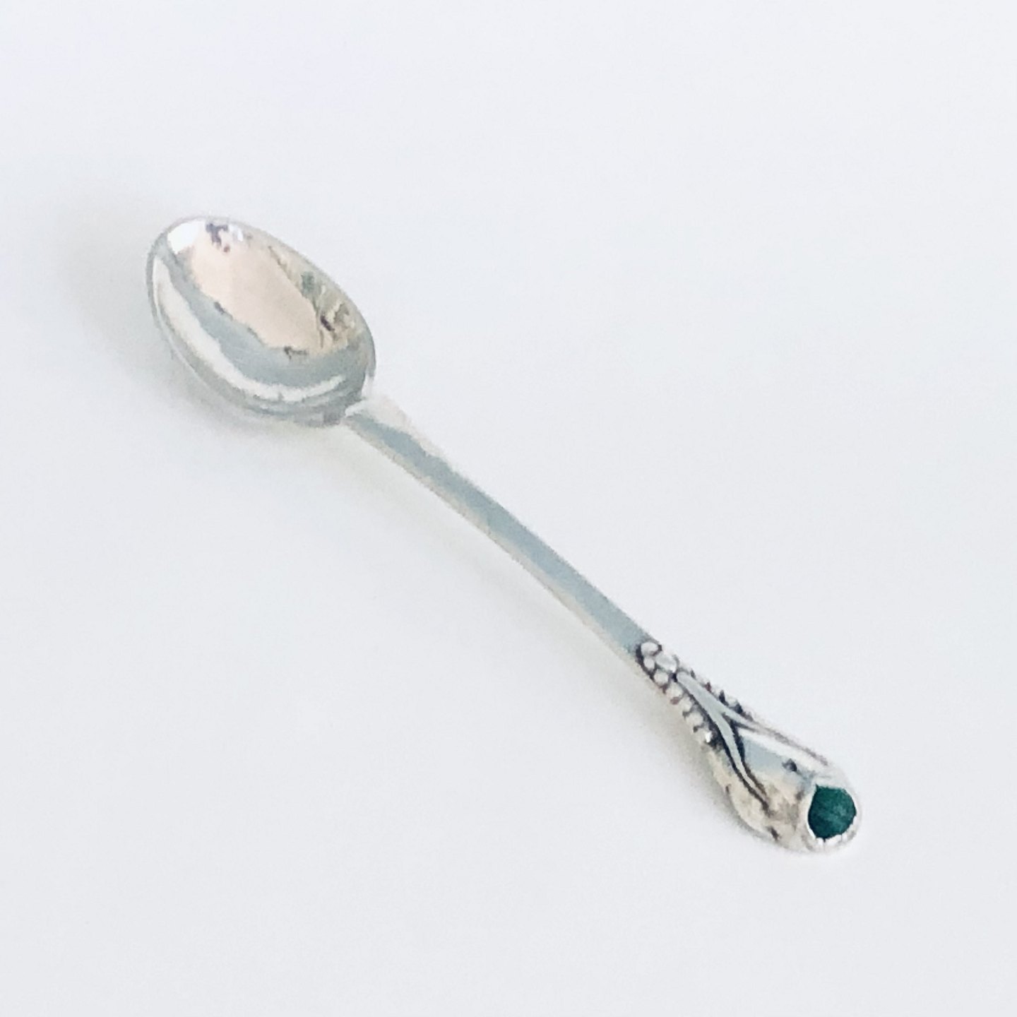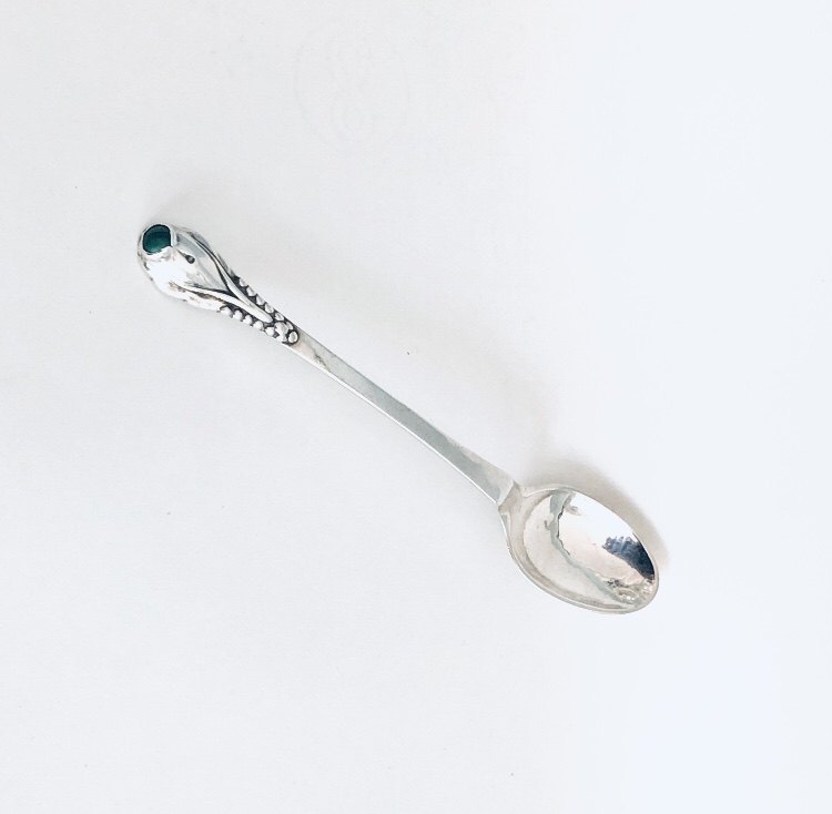 Evald Nielsen Skønvirke sølvske med grøn sten.