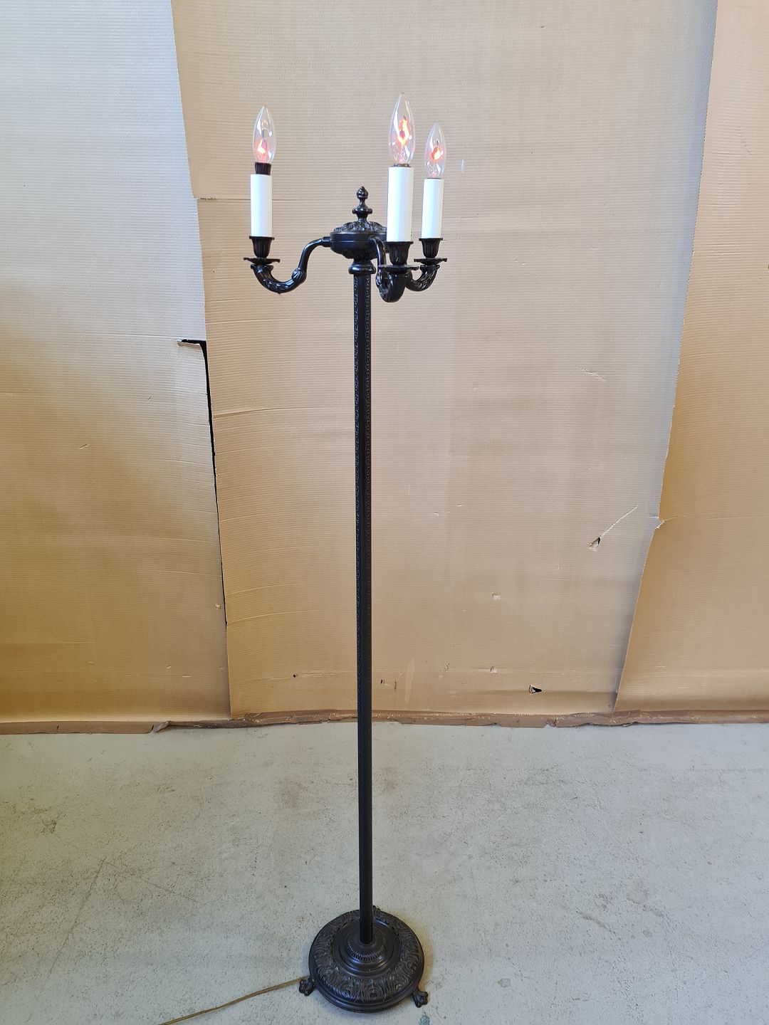 Standerlampe med flammepære, fra 1980erne.