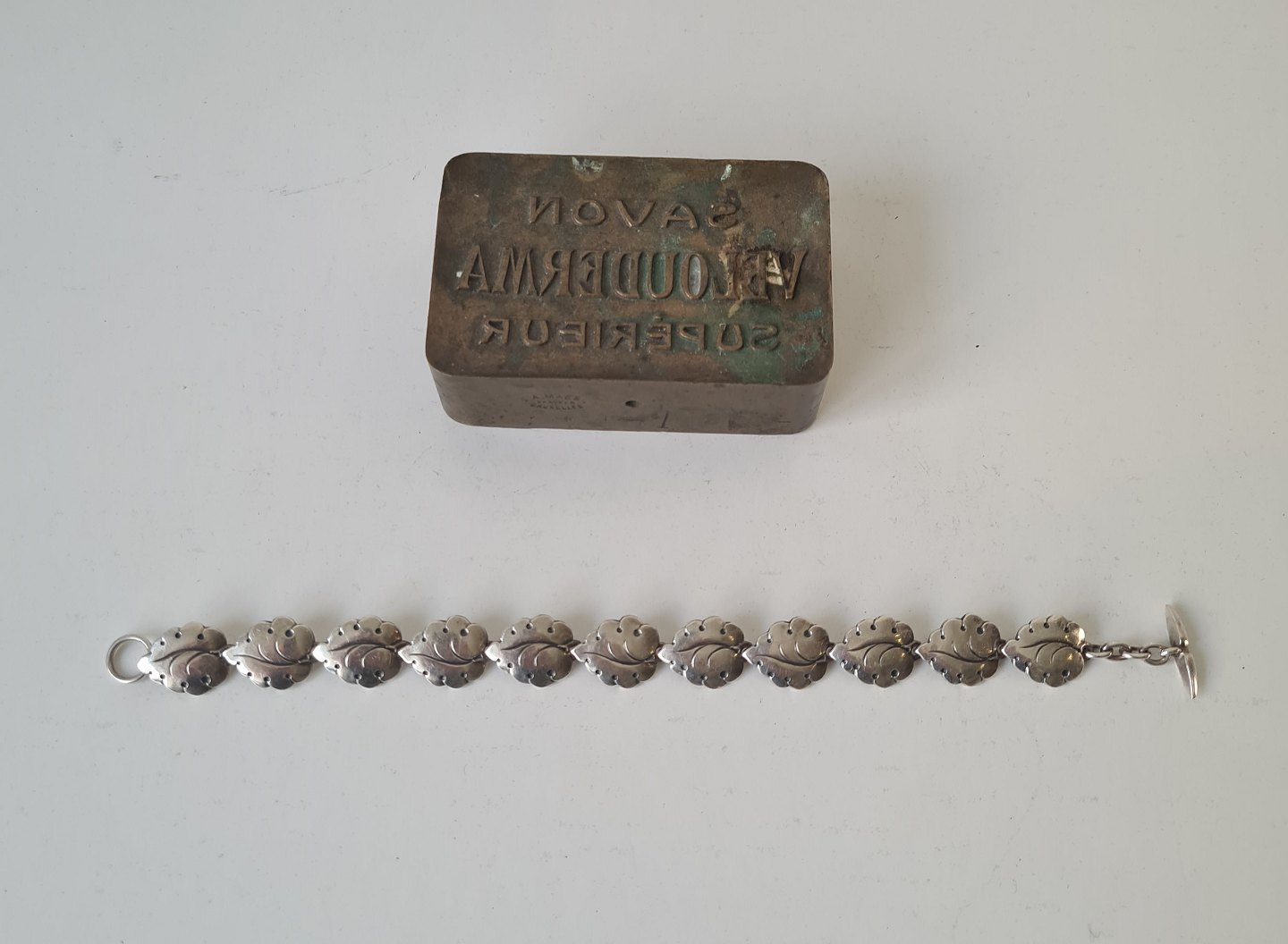N.E.From armlænke i sterlingsølv - bladformede led
