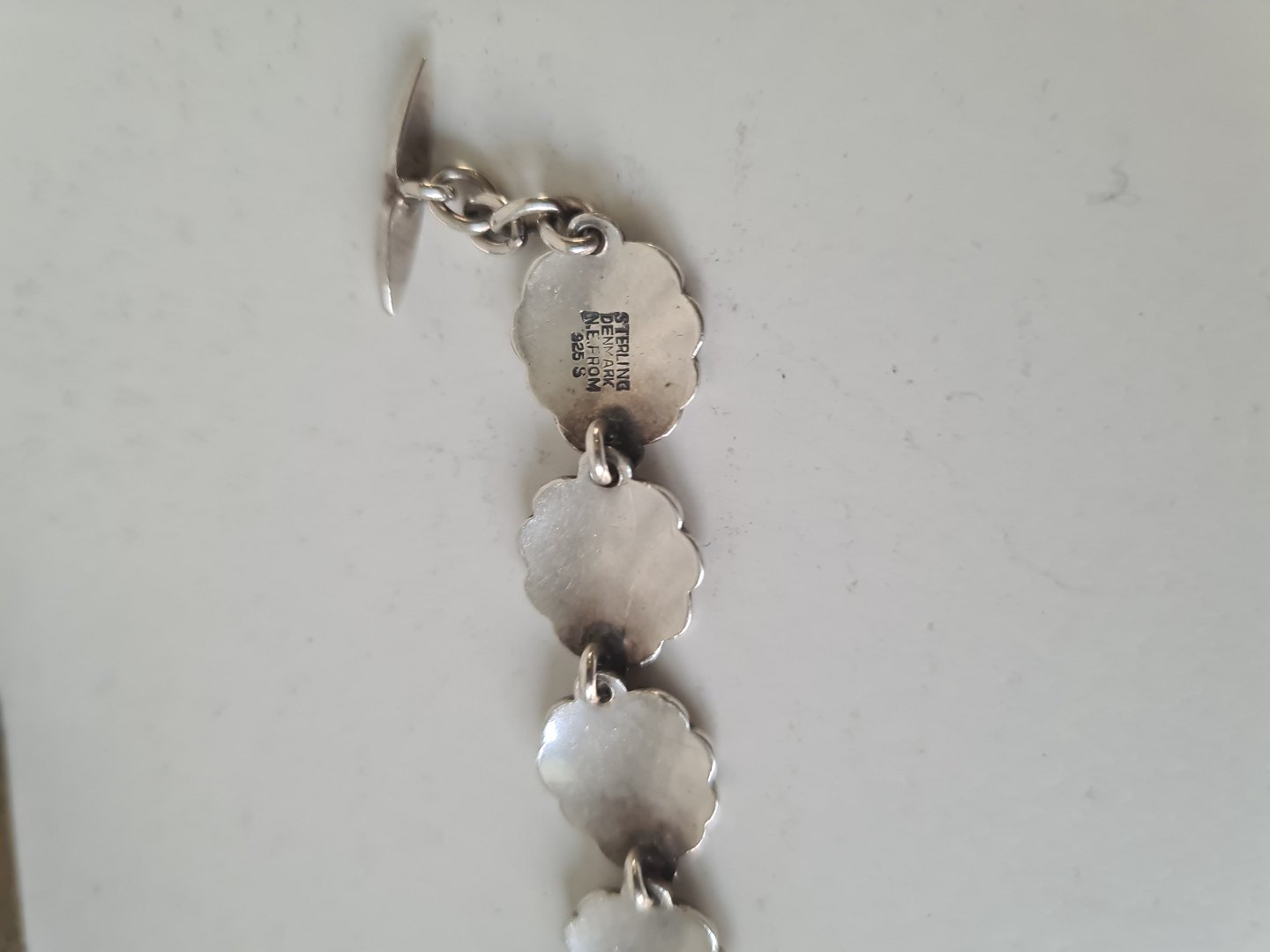 N.E.From armlænke i sterlingsølv - bladformede led 20 cm.
