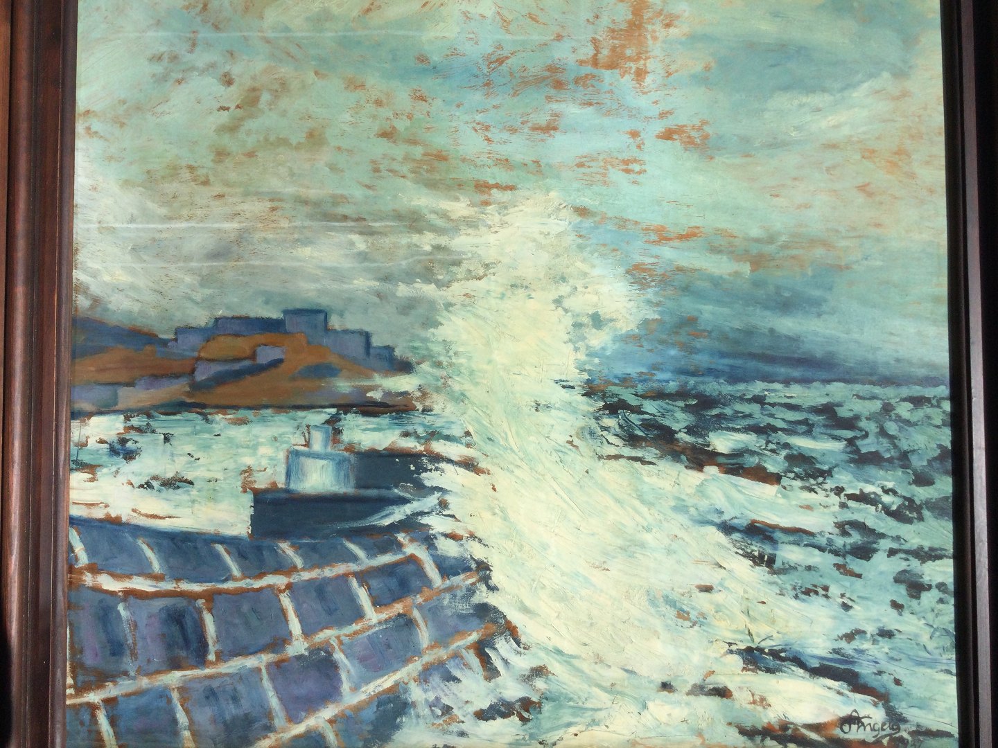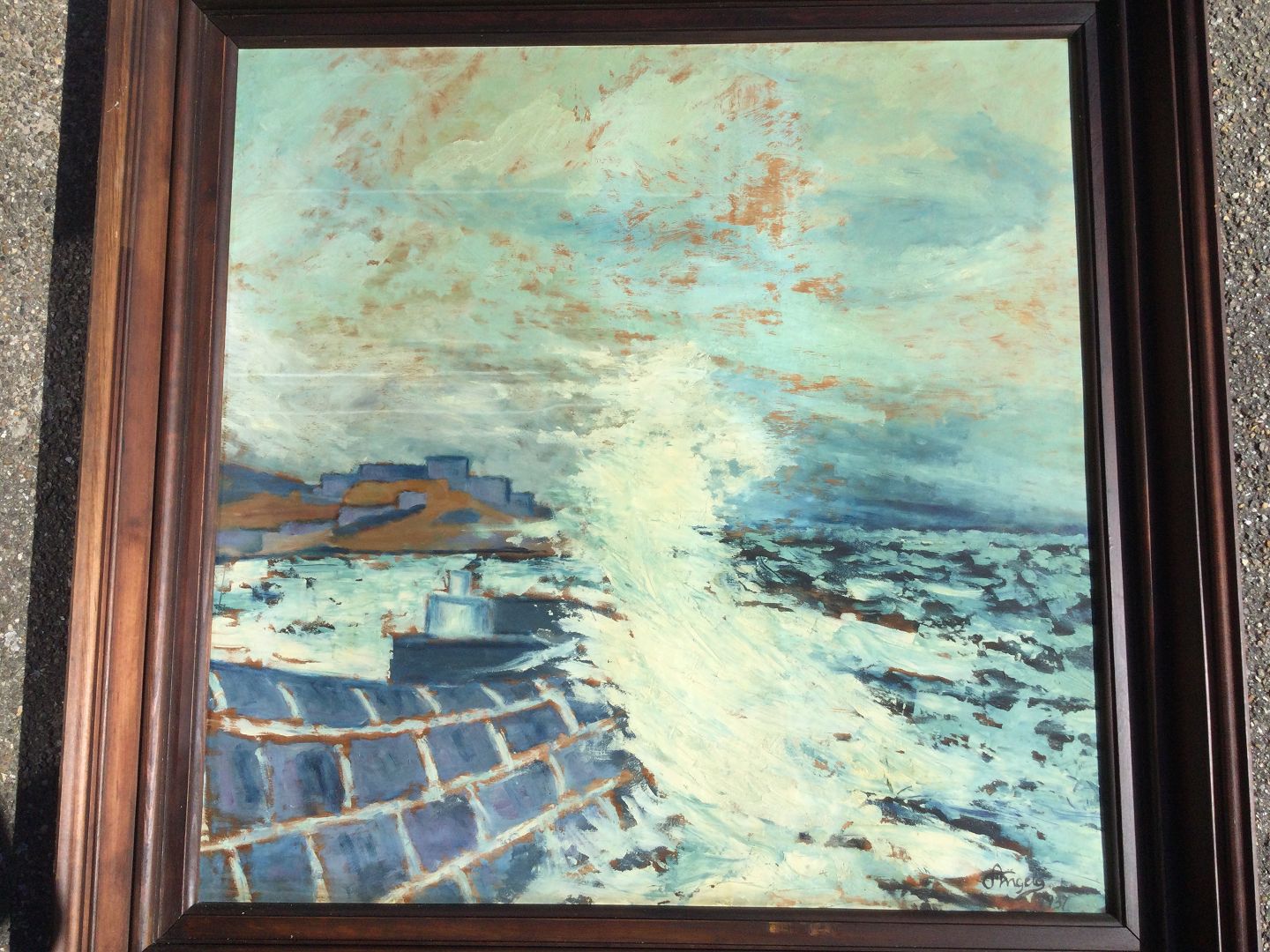 Maleri af Carl Christian Angelo 1937 - Skumsprøjt mod molen.