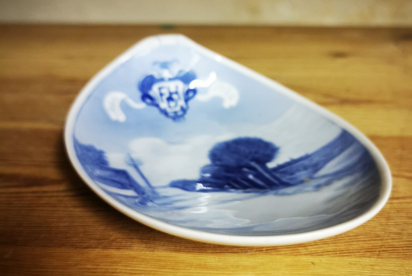 Lille fad i porcelæn fra Royal Copenhagen fra omkring 1930. Fremstår i god stand. Mål: H. 5 cm L. 15½ cm