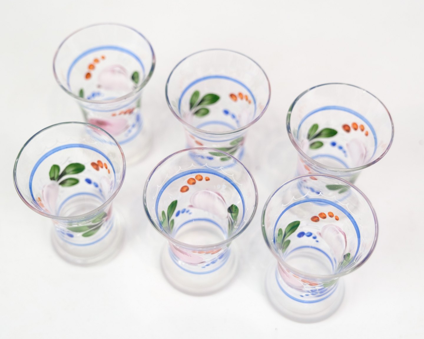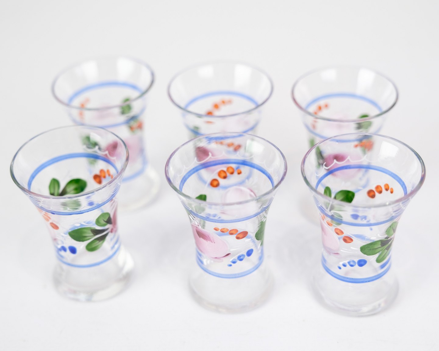 6 snapseglas, håndmalet blomster dekoration,1930
