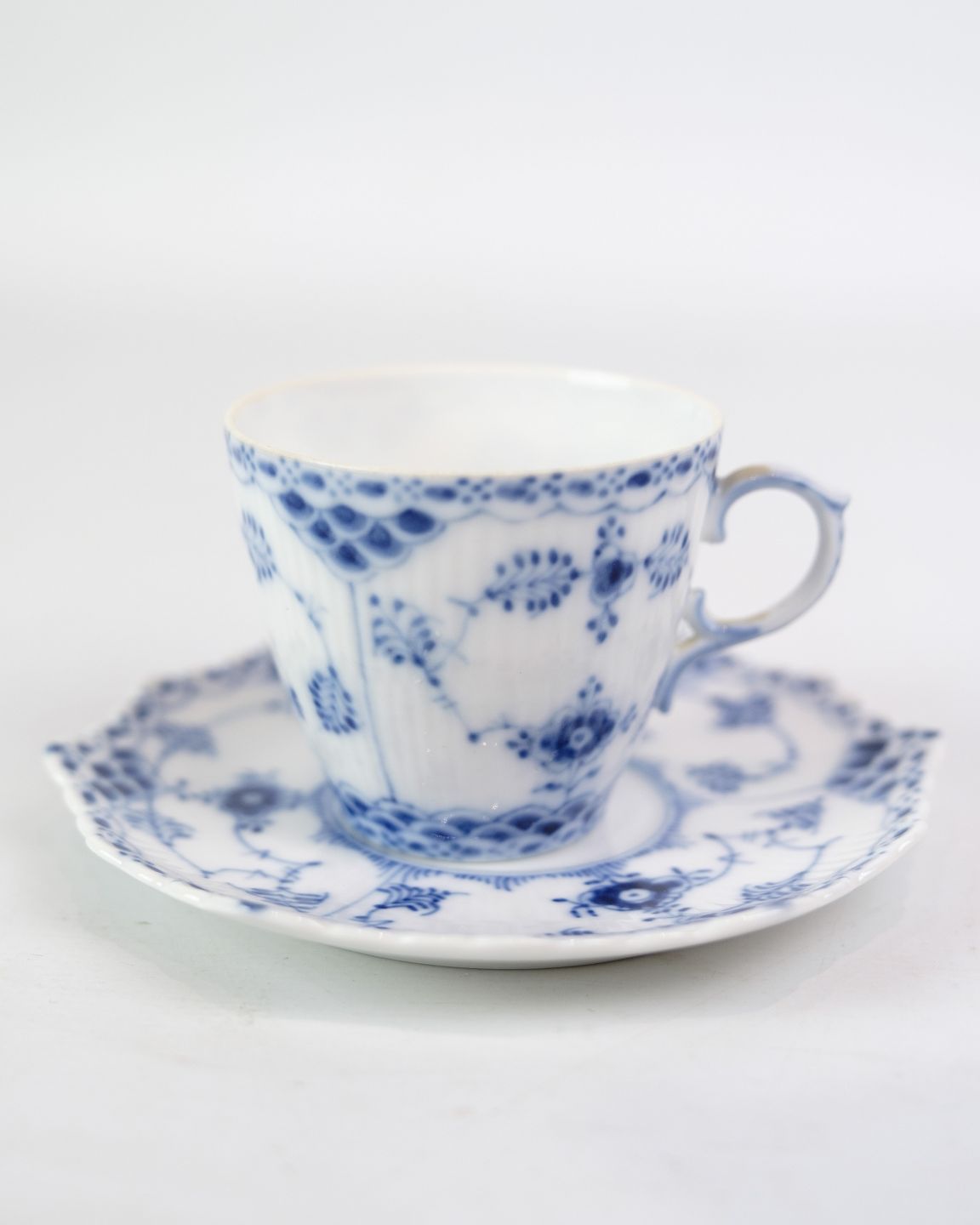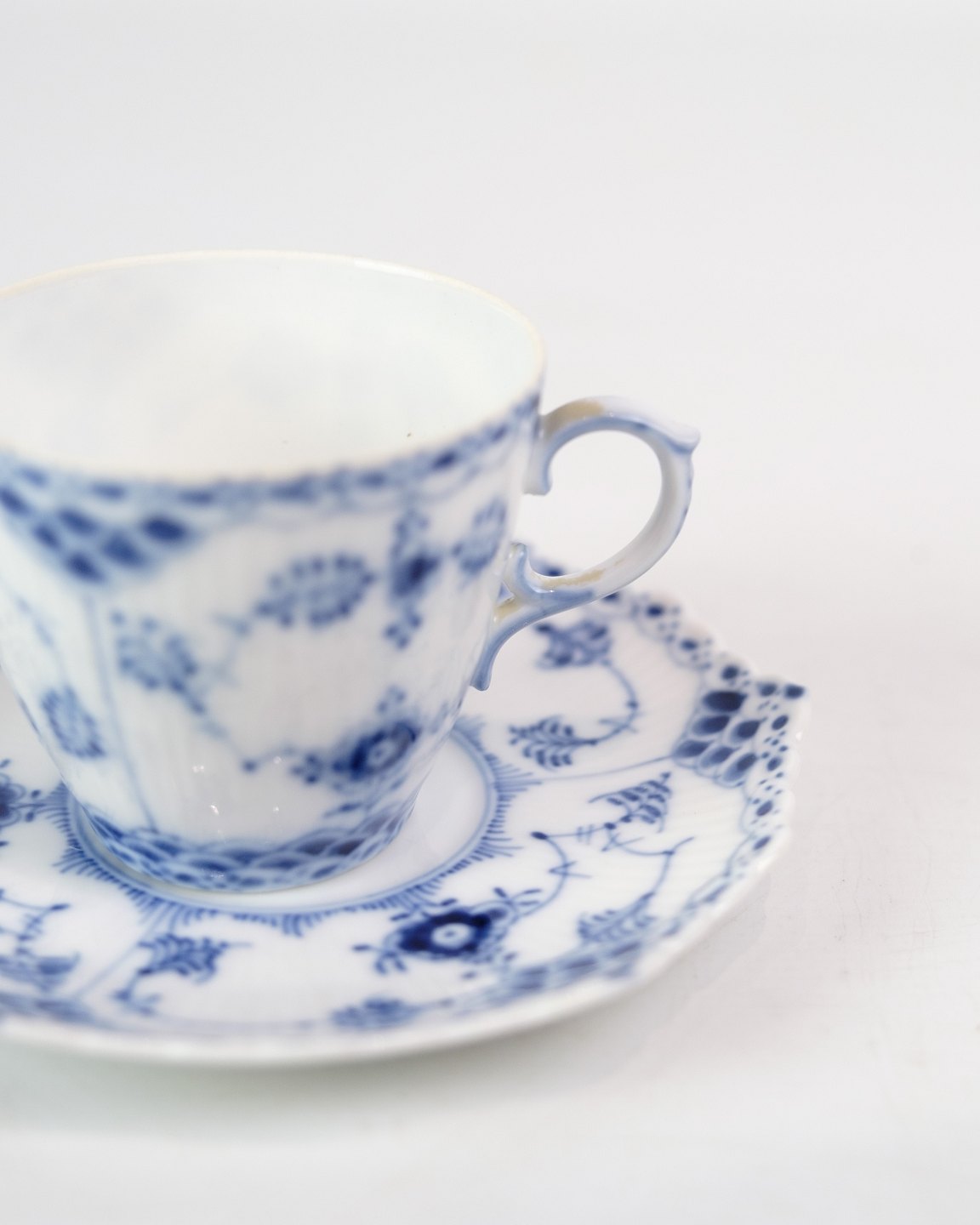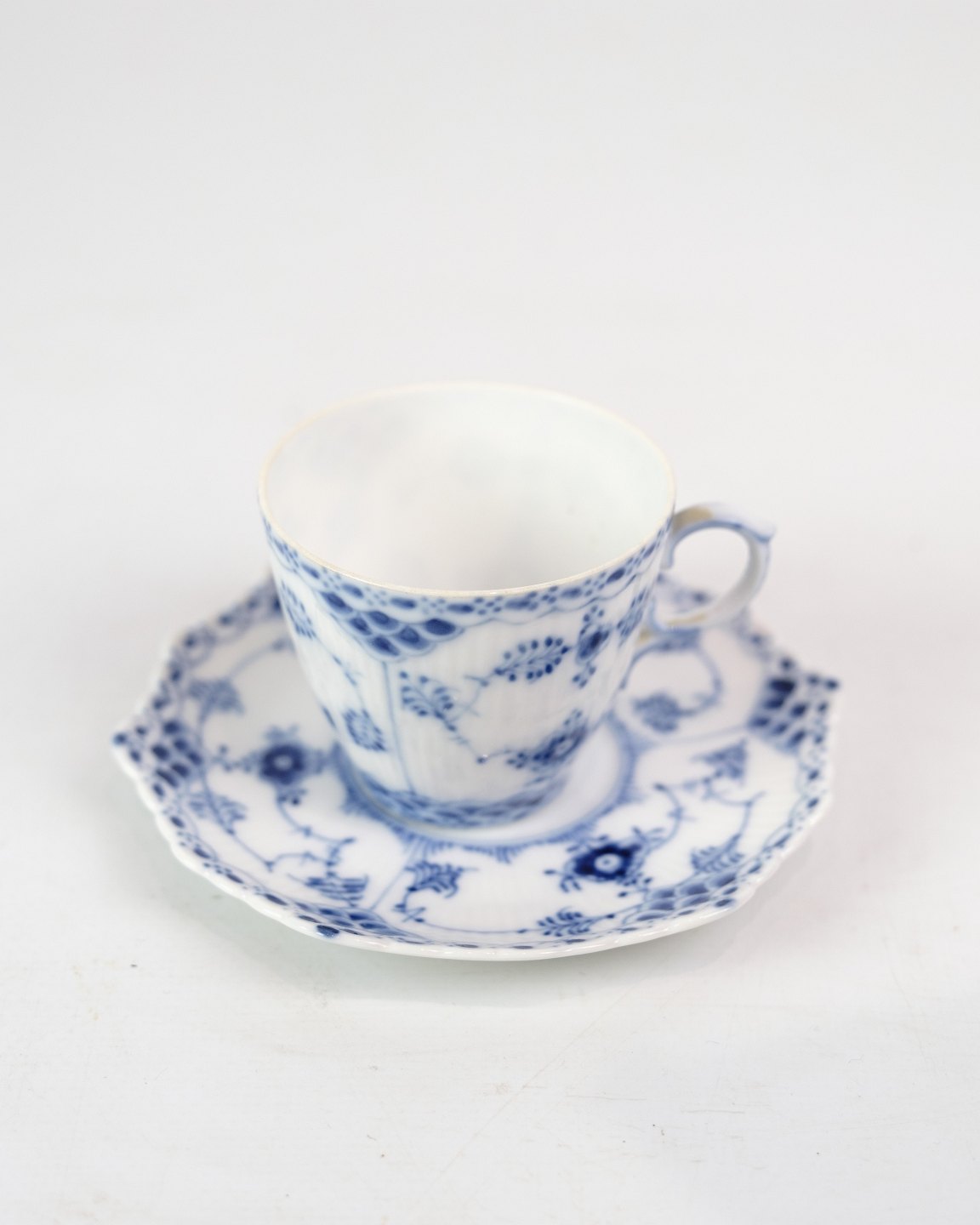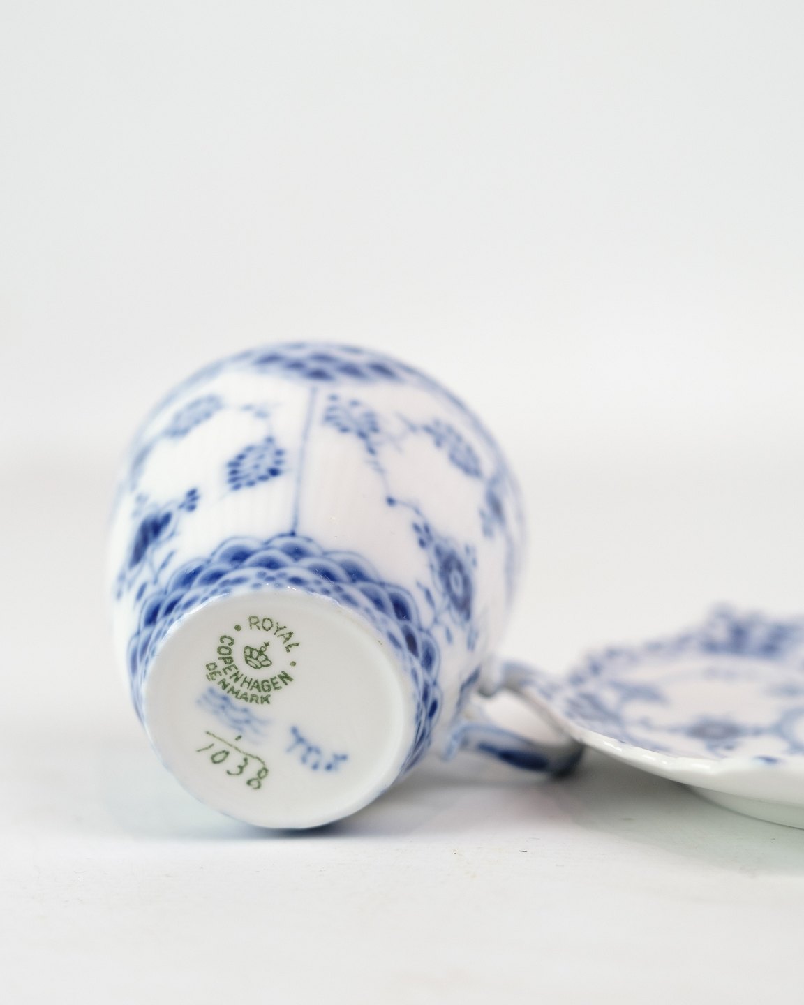 Kgl. Royal Copenhagen musselmalet helblonde espresso kop samt underkop, nr.: 1/1038