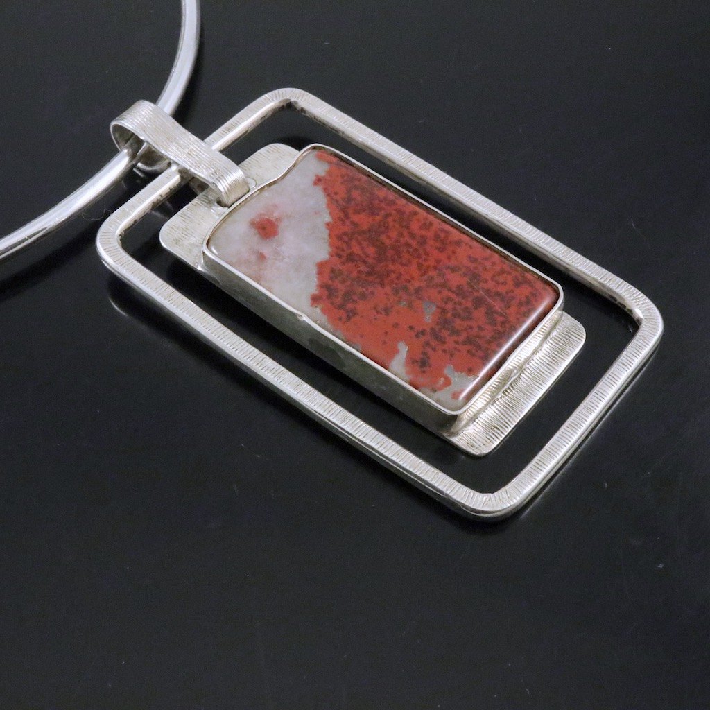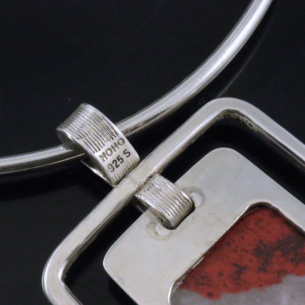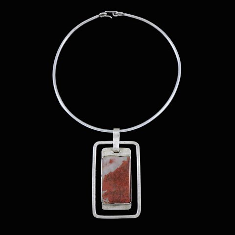 Horster - Copenhagen. Halsring i sterlingsølv med mosagat vedhæng. 1960erne