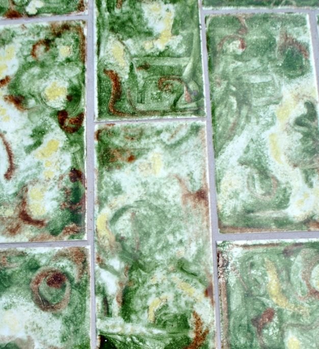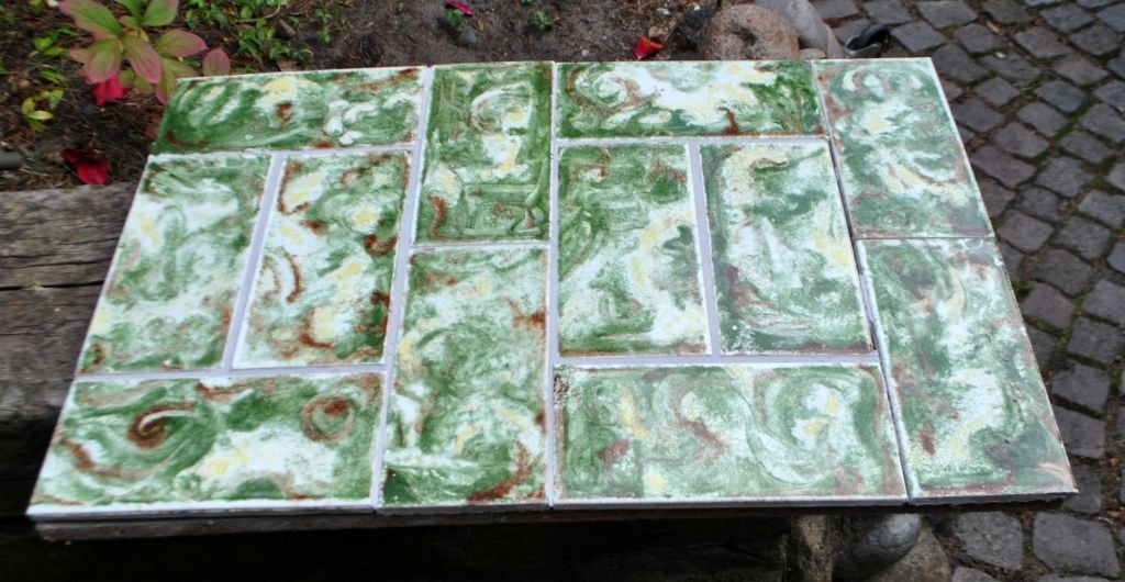 Carlsen, Poul Hauch (1921 - 2006) Danmark. Flisebords plade. Bestående af 12 fliser brunt, grønt gult glaseret. 72 x 47 cm.
