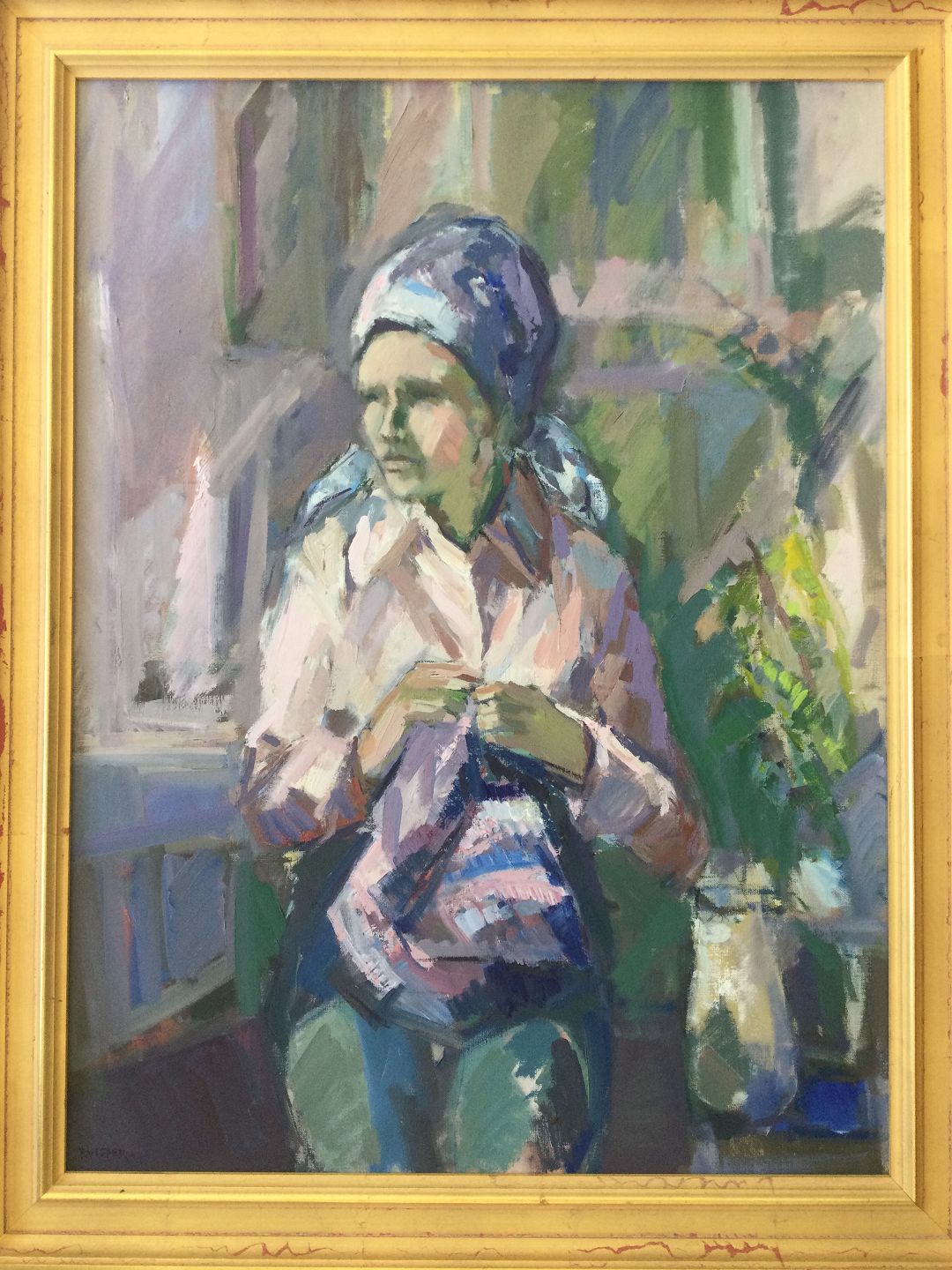 Maleri af Frantz Vester Pedersen - Interiør med kvinde.