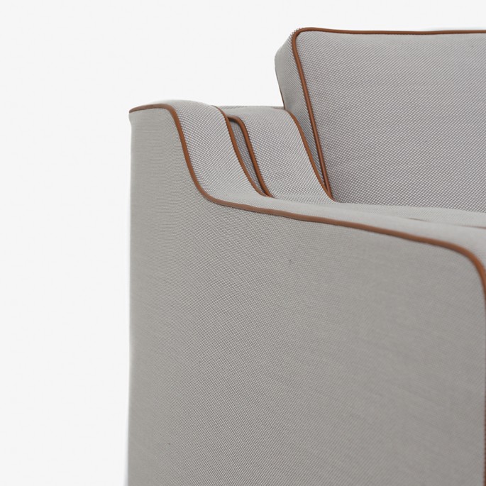 BM 2212 - Nybetrukket 2 pers. sofa i nyt tekstil - Steelcut Trio (farve 203) med keder i Elegance Walnut-læder og ben i mahogni. KLASSIK tilbyder polstring af sofaen med stof eller læder efter eget valg.