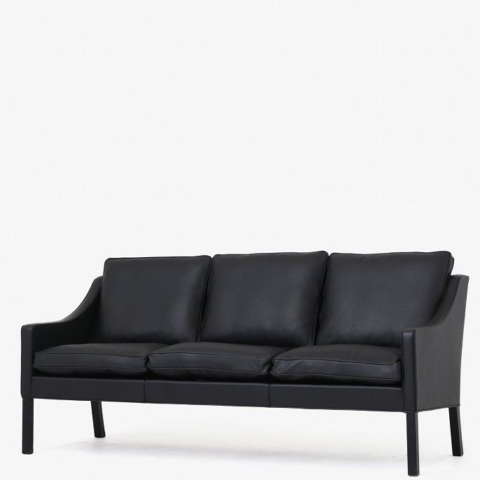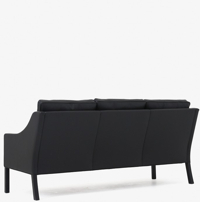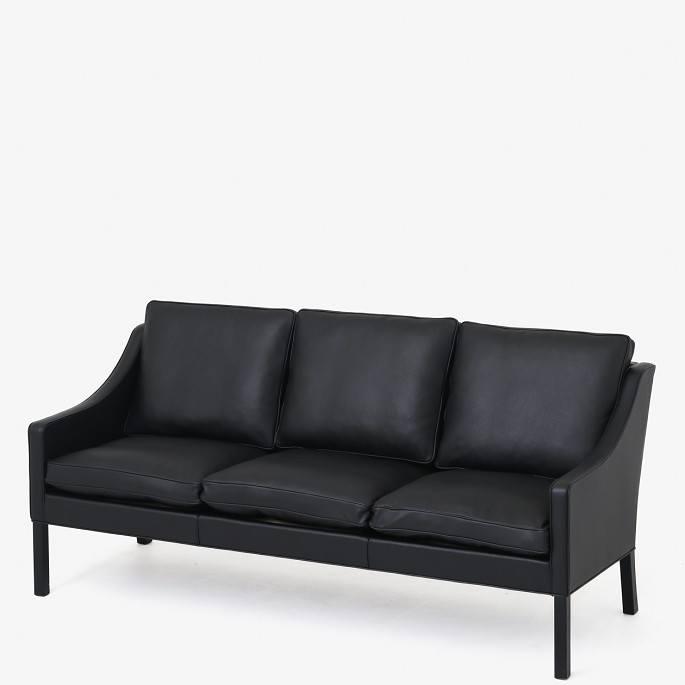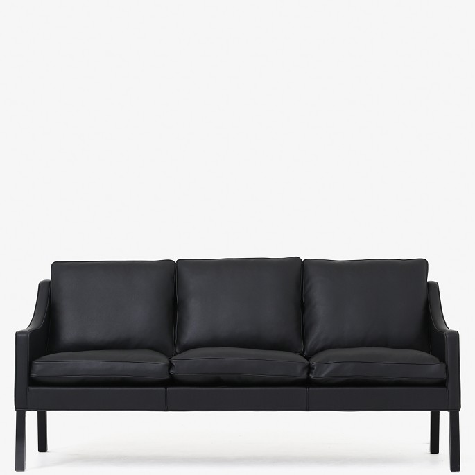 BM 2209 - Newly upholstered 3 seater sofa in black Classic leather and legs in black stained teak. KLASSIK offers upholstery of the sofa with fabric or leather of your choice.