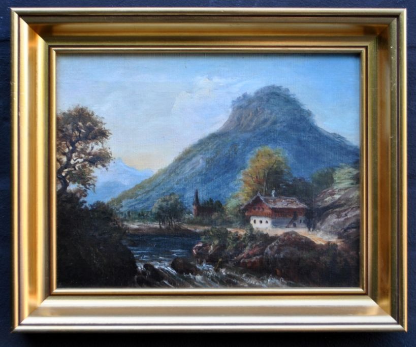 Dansk kunstner (19. årh.): Landskab fra Tyrol. Olie på lærred. Usigneret. 25 x 31 cm.