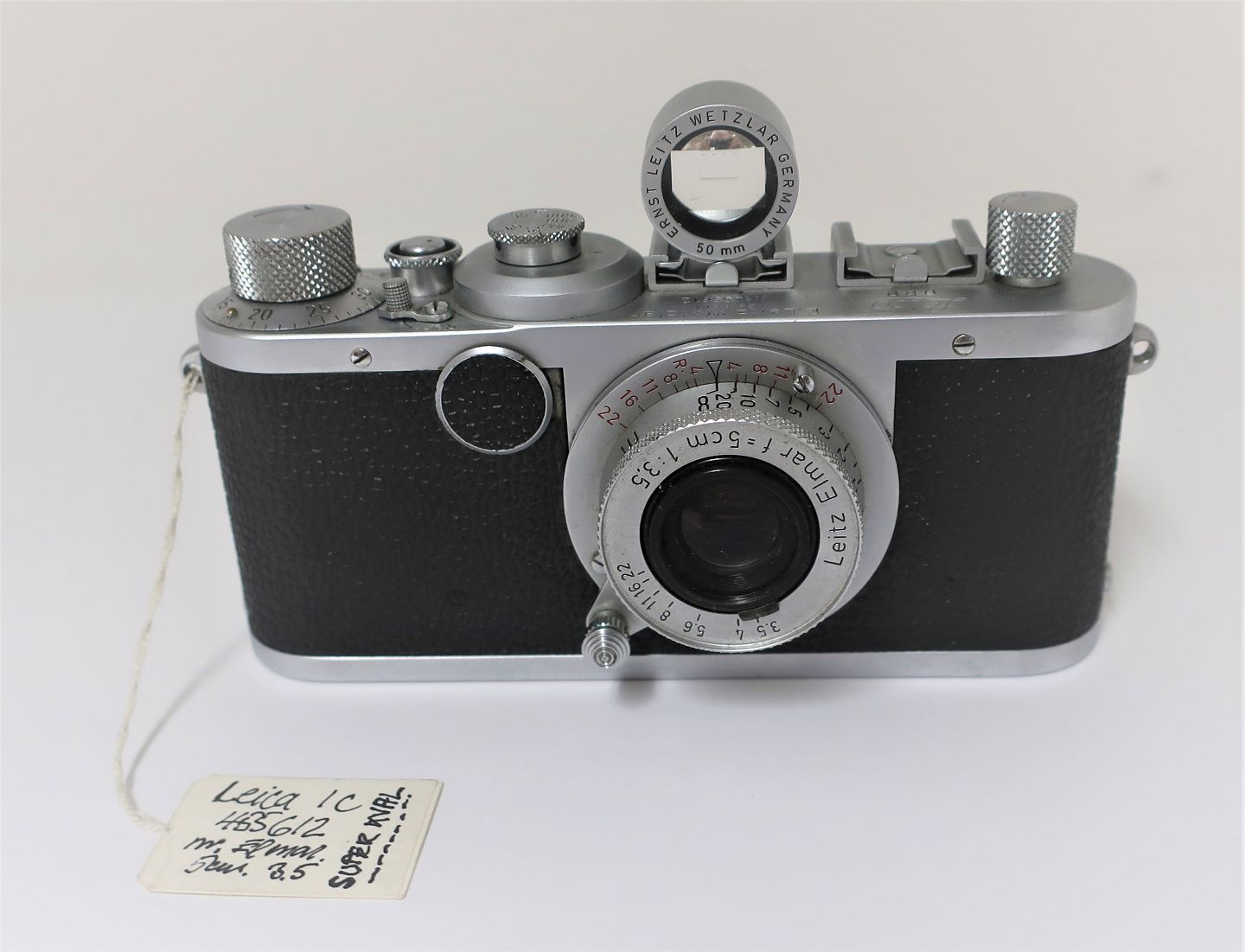 Leica kamera. Model 1C. No. 455612. Med objektiv Leitz Elmar f=5 cm 1:3,5. Meget velholdt.