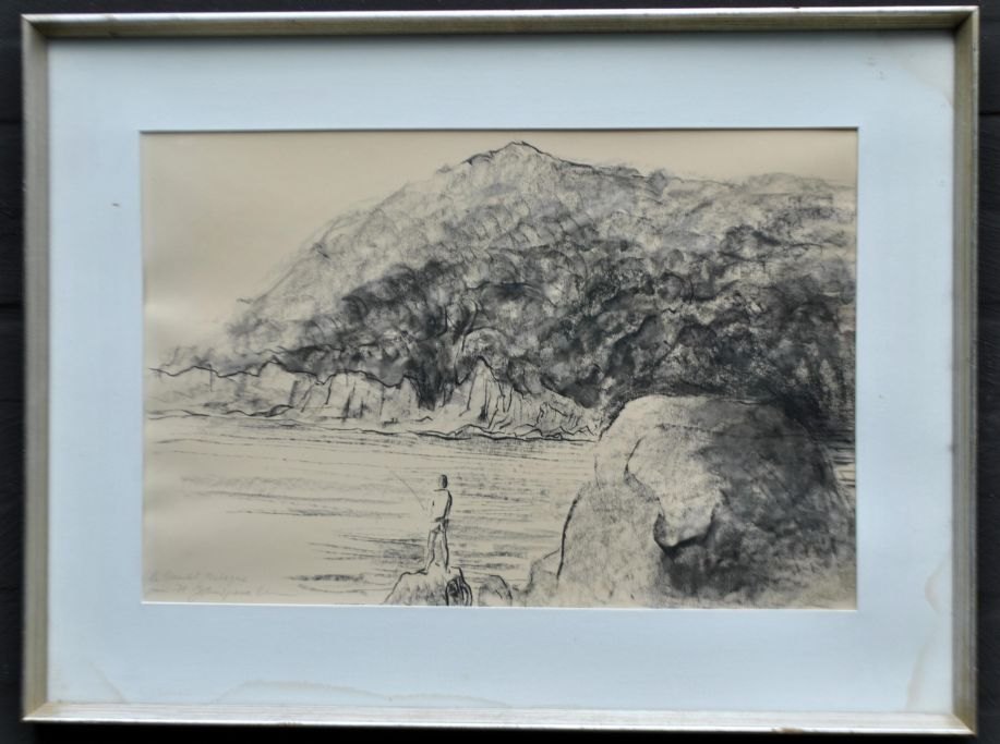 Christensen, John Sparre (1921 - 1999) Denmark: A fisherman, Le Yandel, Brittany, France. Lead. Signed June 1971. 34 x 51 cm.