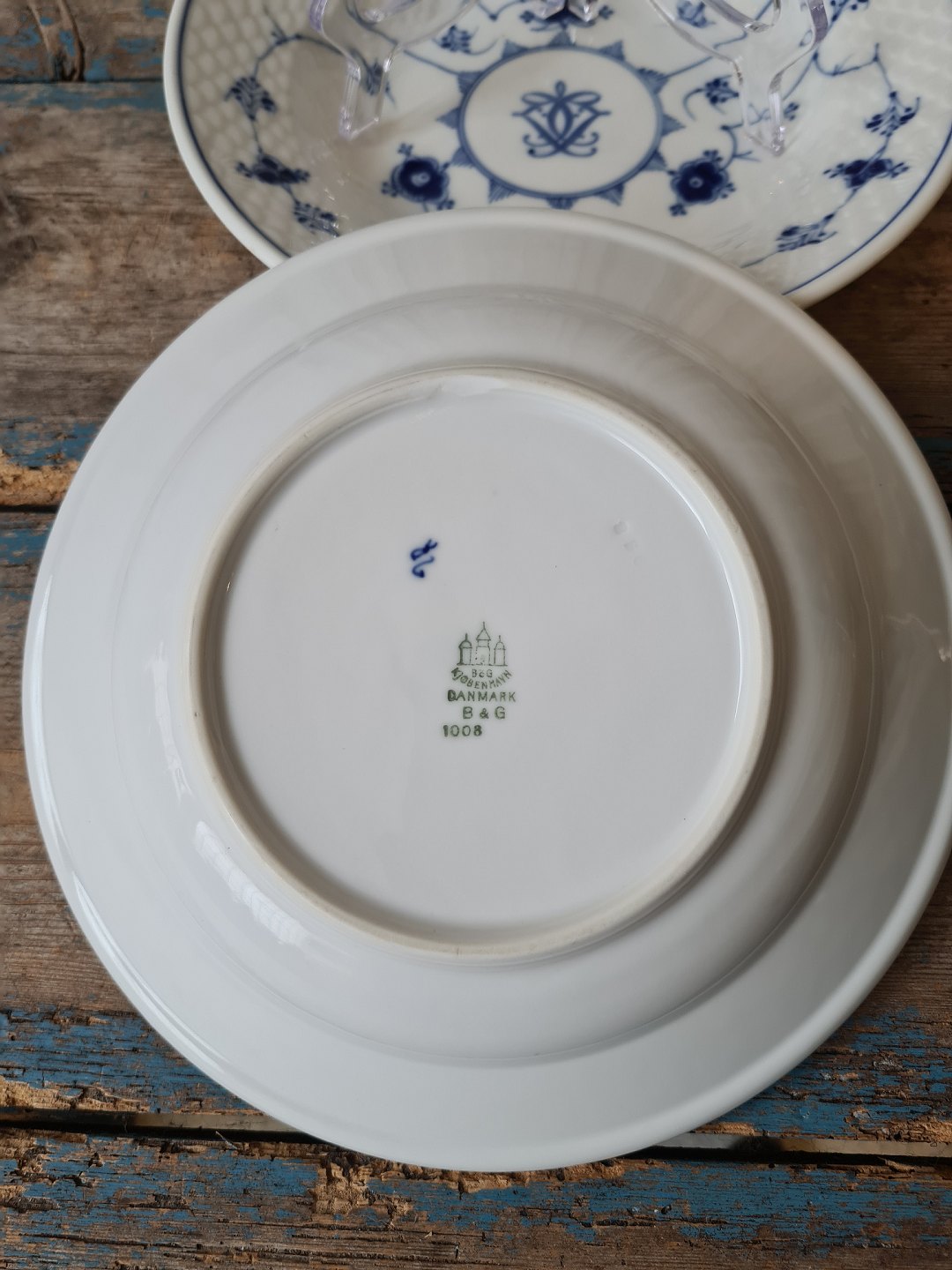 B&G Blue fluted Hotel porcelain with logo large soup plate No. 1008