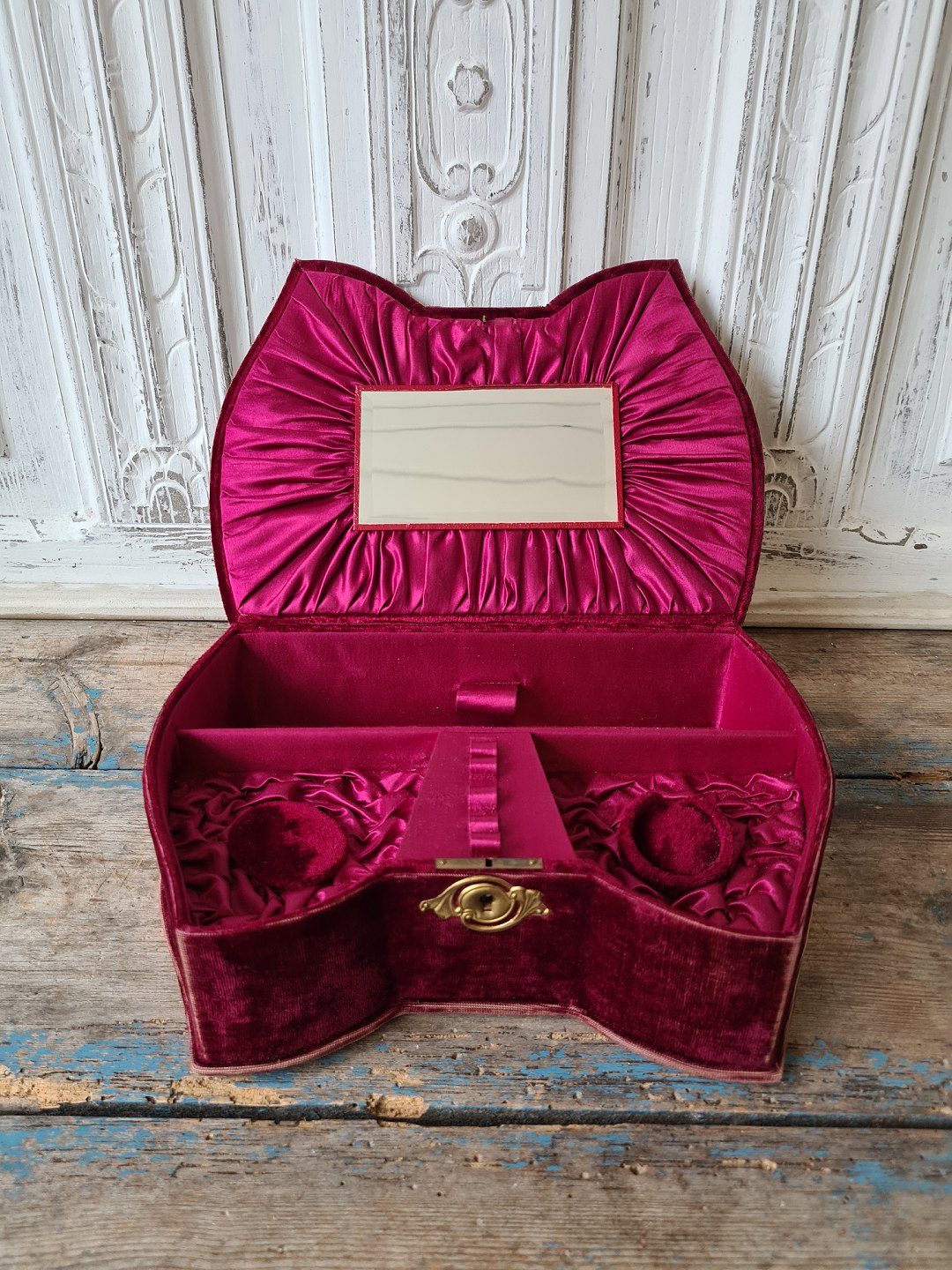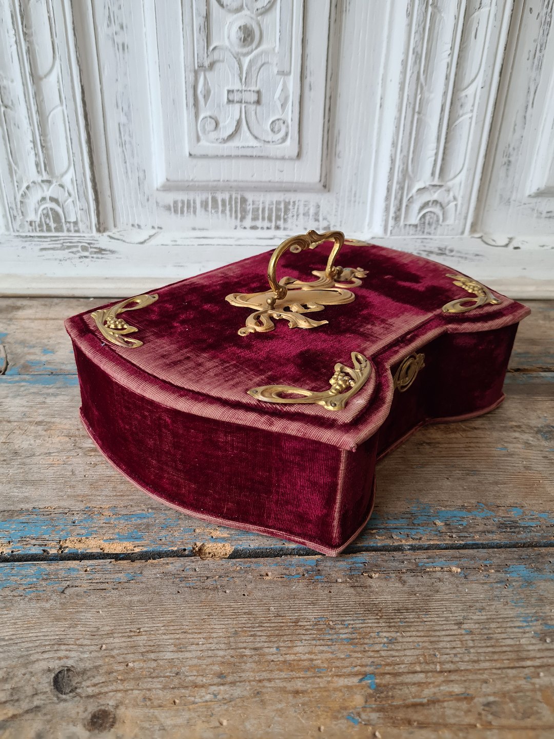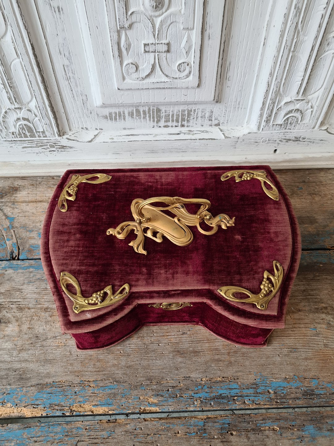Fransk Art Nouveau smykkeskrin beklædt med lilla fløjl.