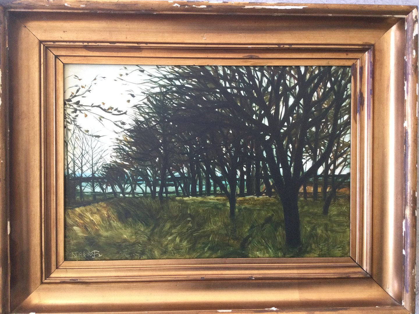 Maleri af Nils Ryberg 1980 - Æbleplantage.
